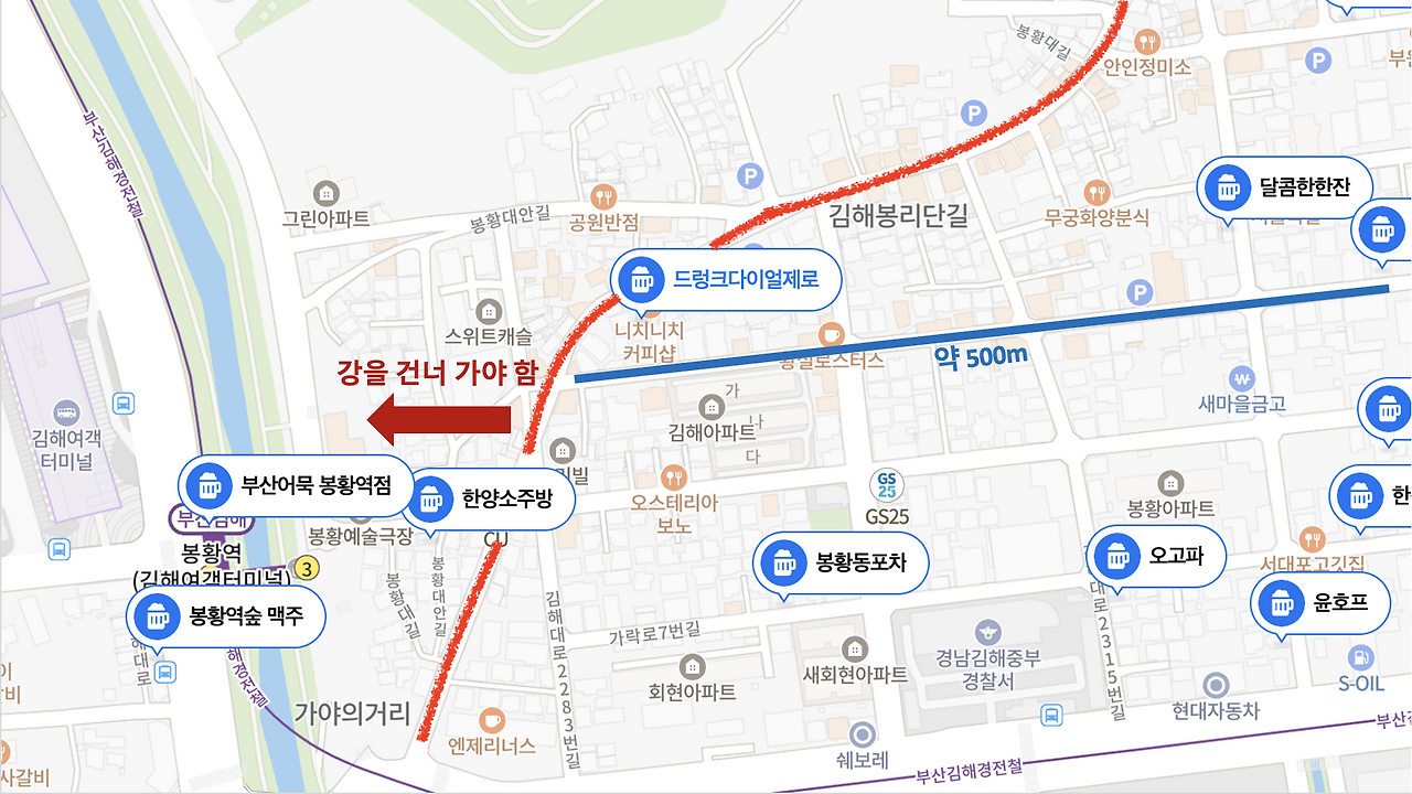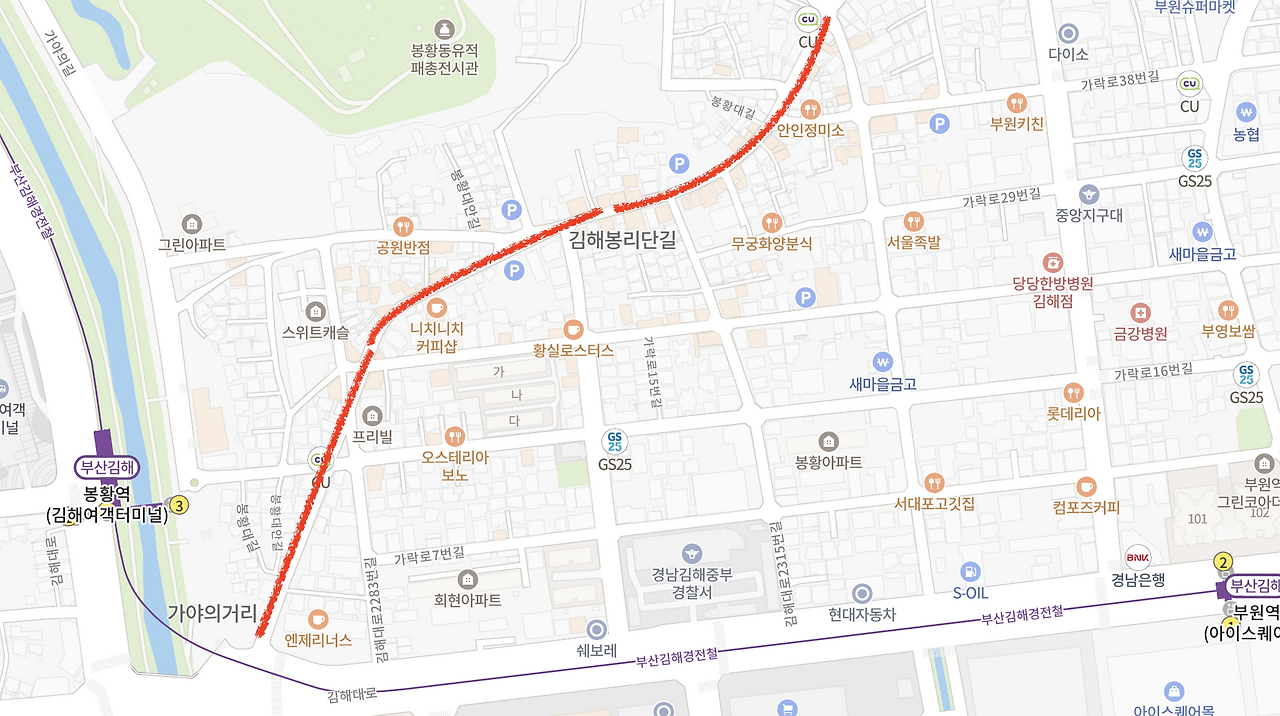 장유나 율하 근처가 아니라면 결국 김해 내에서 남은 위치는 내외동을 포함해 대학가 근처에 위치해야 하지 않을까 싶었다. 대학가 근처는 직장인이 접근하기에는 한계가 있을 것 같아 일단 후보지에서 제외하고 내외동을 둘러봐야지 생각하던 찰나 '봉리단길'이라는 지역이 있다는 걸 알게 되었다.