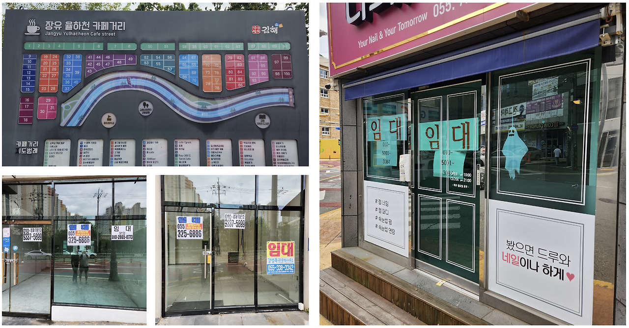 처음에는 최근 핫하다고 하는 율하2지구나 율하천 근처 상가를 1순위로 생각했는데, 임대료가 생각보다 너무 올라있어 엄두가 나지 않았다. (1층 8평 남짓한 공간이 3000/200 정도였다!) 역시 사람이 몰리는 데는 비싼 이유가 있구나 생각하며 처음 시작하는 가게를 높은 고정비를 안고 시작하기에는 부담되어 후보군에서 제외했다. 탈락!