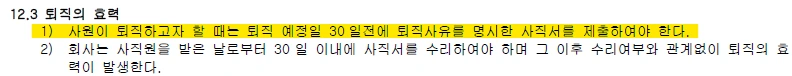 물론 법적으로 30일 전에 통보를 안하더라도 강제로 이직이나 퇴직을 제한할 수는 없다. 하지만 어떻게든 시끄러운 상황을 만들지 않으려면 퇴사하고 나서도 전화와서 모르는 부분을 물어보지 않게 주변이 잘 정리되어 있어야 한다.