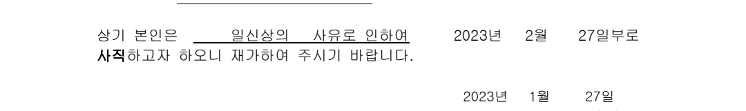 사직서 양식을 열어보니, 퇴사하는 날짜를 통보하게끔 되어있었고, 2월 25일에 나갈지, 26일에 나갈지, 27일에 나갈지 썼다 지웠다를 정말 여러 번 반복했다.