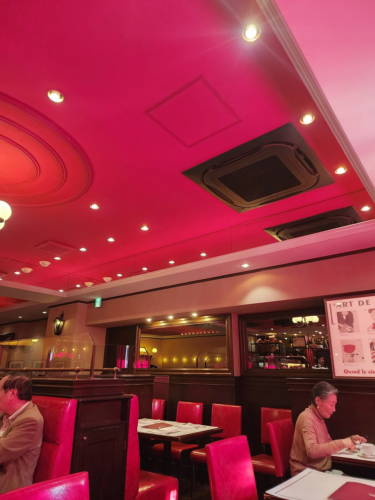 점심을 먹고 공원을 산책하니 달콤한 디저트가 당겼다. 그래서 시부야에 있는 브랏스리 비론이라는 디저트 가게로 넘어갔다. 브랏스리 비론 원래 크레프가 유명한 디저트 집인데, 테이크아웃일 경우에만 먹을 수 있어서 시간이 여유로워 매장에서 먹으려고 했던 나는 크레프는 패스하고 좋아하는 초코 종류의 디저트만 1층에서 골라서 대기줄을 걸고 2층으로 올라갔다. 근데, 올라갈 때 대기줄을 거는 것에서부터 이상함을 느꼈는데 올라갔더니 빨간색 고급스러운 레스토랑 분위기에 딱 봐도 부자들로 보이는 사람들이 가득한 이상한 분위기의 공간에 들어가게 되었다. 안내하는 사람도 다들 정장을 입고 있었다.. 그렇다. 2층은 디저트 집이 아니라 고급 레스토랑이었던 것이다. 그래서 디저트를 포크와 칼로 잘라먹으며, 아메리카노 한 잔을 주문했다. 옆에는 정말 돈 많아 보이는 사람들이 비즈니스나 식사를 하는데 눈치가 보였다.. 심지어 3,000엔 이상 주문하지 않으면 카드를 받지도 않았다.. 시크릿 레스토랑 유럽 비즈니스나 소개팅하는 자리에 혼자 덩그러니 빵을 썰어먹는 경험은 절대 잊지 못할 추억이 될 것 같았다.