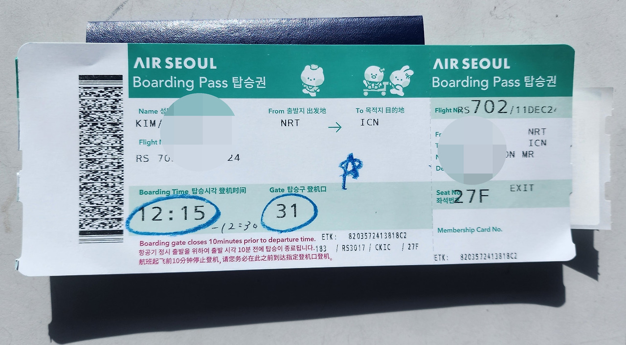 이번에 구매한 비행기 티켓은 한국에서 나리타로 올 때는 위탁수하물이 15kg까지 붙어있었는데, 나리타에서 한국으로 올 때는 위탁수하물이 없는 티켓이었다.