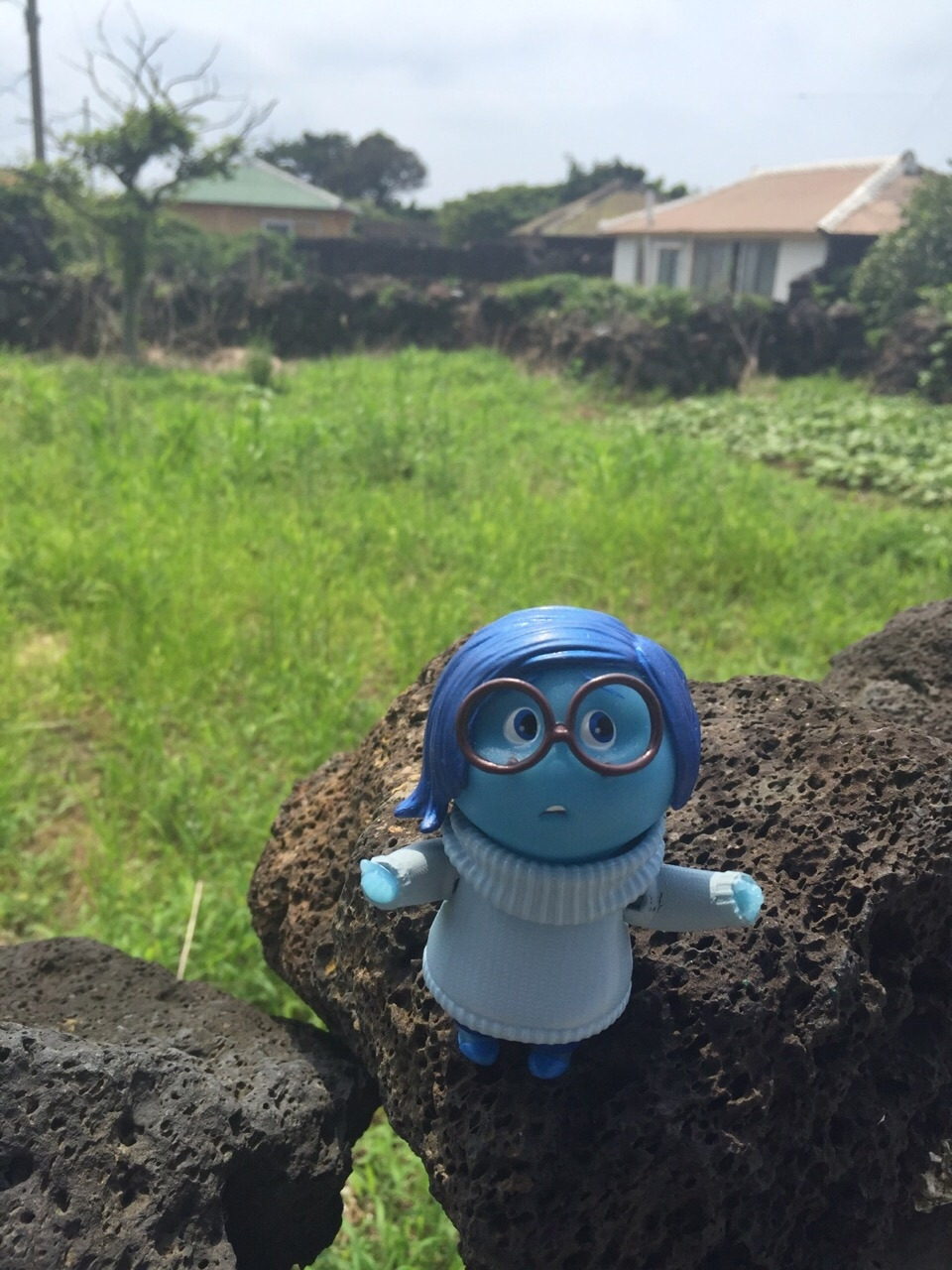 몇 해 전 무더운 한여름에 제주로 내려와 잠시 여행을 했다. 게스트하우스에서 만난 사람 한 명이 '슬픔이' 인형을 가지고 다녔다. 그 '슬픔이'를 세워 놓고는 이곳저곳에서 사진을 찍었던 기억.