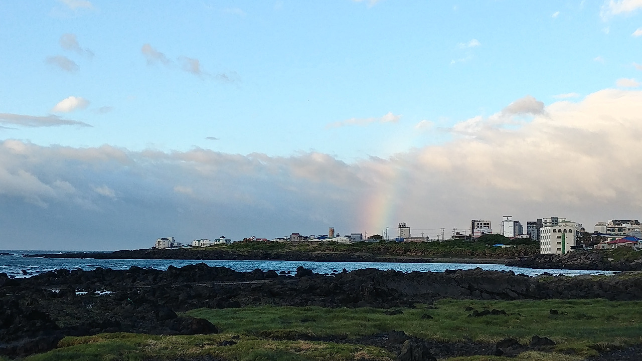 선물을 받은 것 같았다. 같은 제주 땅 위에서 나는 무지개를 못 봤다고 불평하지 않고 눈앞에 보이는 바다와 하늘 풍경에 감사한 행동에 작은 선물이 내려진 것 같았다. 그동안 선하게 살아 온 그분보다는 덜하겠지만 '너도 선하게 산 편이니 요만큼은 보아라' 하고 배달된 것 같았다.