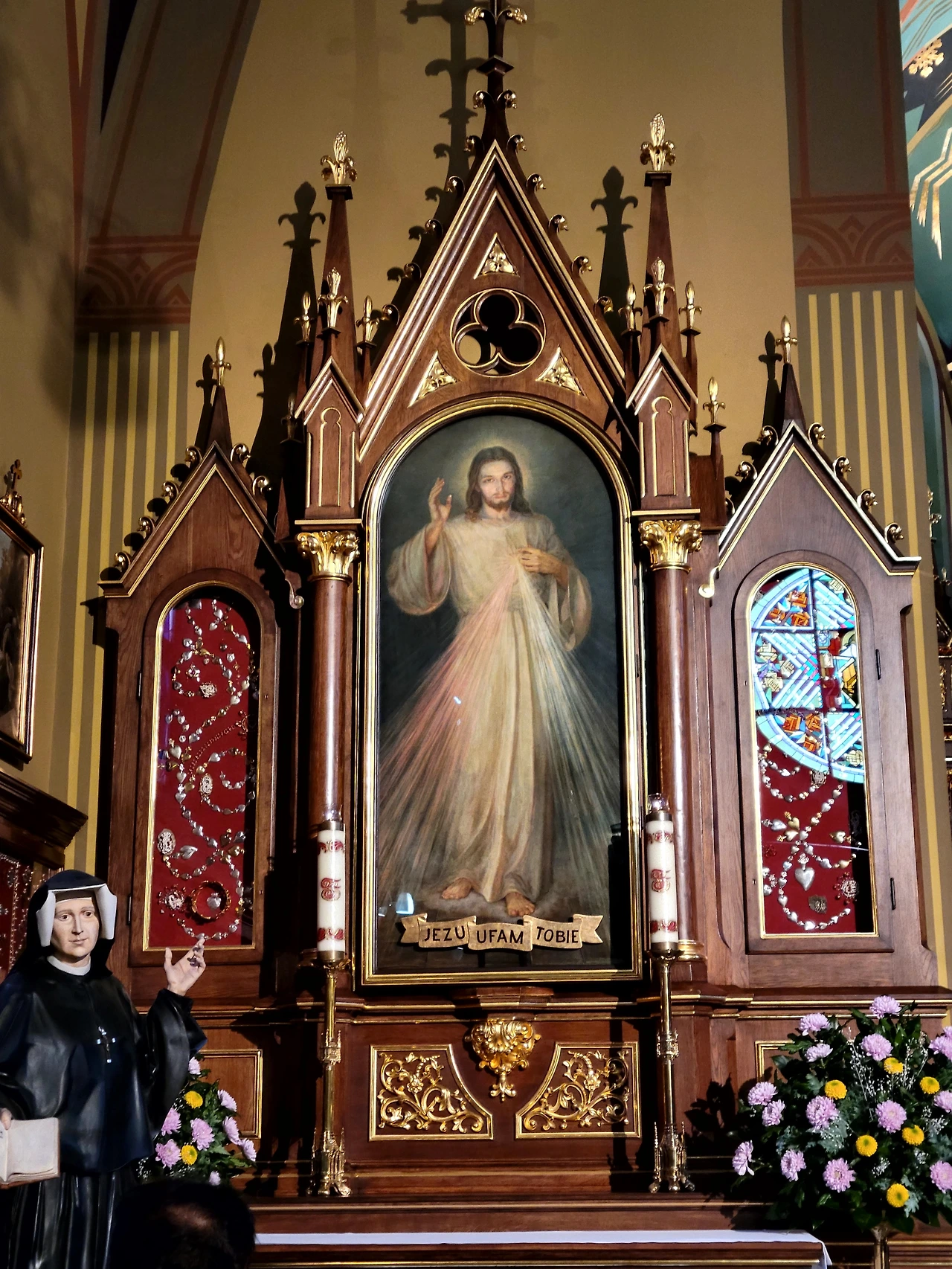 일행이 찍은 파우스티나 성녀 모형과 자비의 예수님 그림.