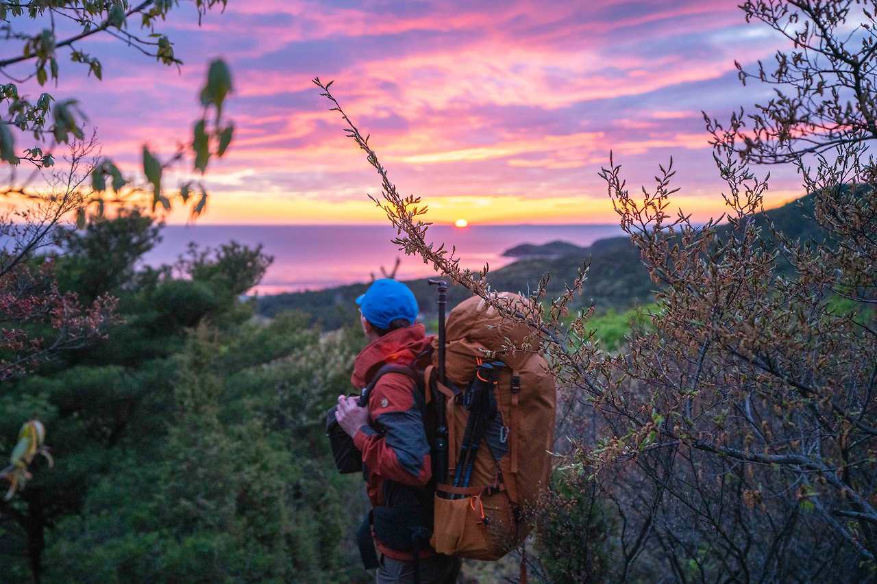 산 중간쯤을 오를 때였다. 오락가락 내리던 비가 그쳤다. 회색 빛 뭉개진 구름 틈새로 노을이 나타나기 시작했다. '아! 조금만 빨랐어도 산 정상 전망대에서 노을을 볼 수 있었는데... 회를 먹지 말걸' 방금 전까지 행복했던 과거는 아쉬운 현재로 바뀌었다. 입을 호강 시키느라, 눈 호강을 놓쳤다. 바다 쪽으로 몸을 돌렸다. 수풀에 가려진 노을을 잠시 쳐다봤다. 다시 산 정상을 향해 부지런히 걸음을 올렸다.