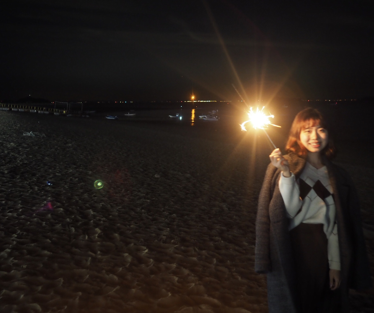 저녁을 먹기 전에 잠시 들른 해수욕장. 모래사장 위의 발자국이 갈색 파도가 되어 일렁였다. 폭죽을 터뜨리며 당진의 밤을 장식한다. 먼발치에 있던 아이들은 폭죽 소리를 듣고 짹짹거리며 환호하고 엄마 아빠는 그런 그들의 손을 잡는다. 한동안 이곳의 따뜻한 장면이 마음을 간지럽히겠지.