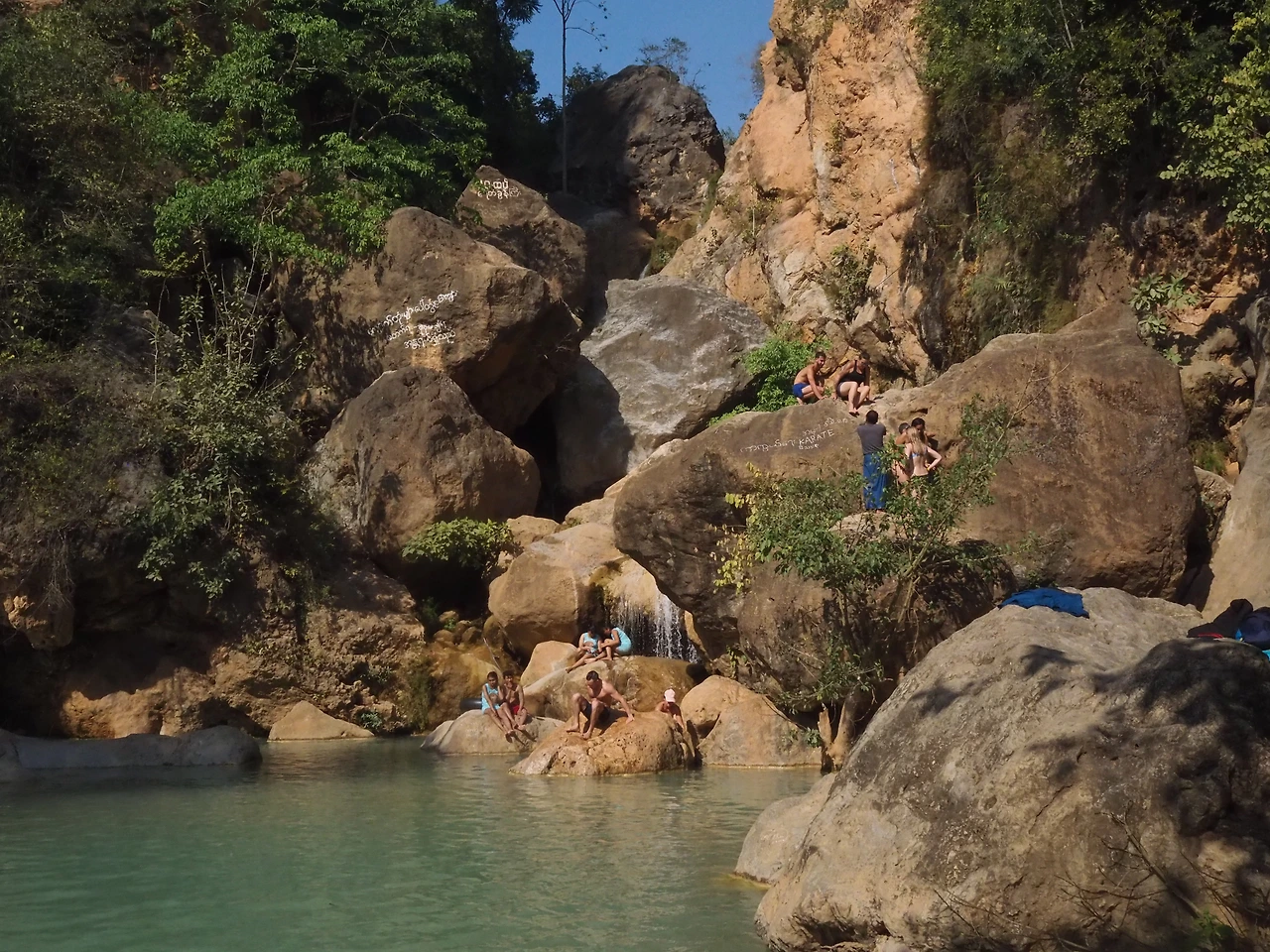 폭포 정상까지 가는 길은 생각보다 멀고 가파르다. 바닥에 박힌 돌이 미끄럽기 때문에 더 조심하지 않으면 다치기 쉽다. 우리는 길을 잘못 들어서 조금 더 돌아가게 됐다. 아아, 점심을 먹은 게 얼마나 감사하던지. 계획에 없던 트레킹을 하며 땀을 흘린다. 표지판이 온통 미얀마어로 적혀 있어서 올라가는 동안 몇 번이나 물었다. “Excuse me. Is this the right way to deedo..” 문장 끝에 물음표를 찍기도 전에 대답하는 아저씨도 계셨고.