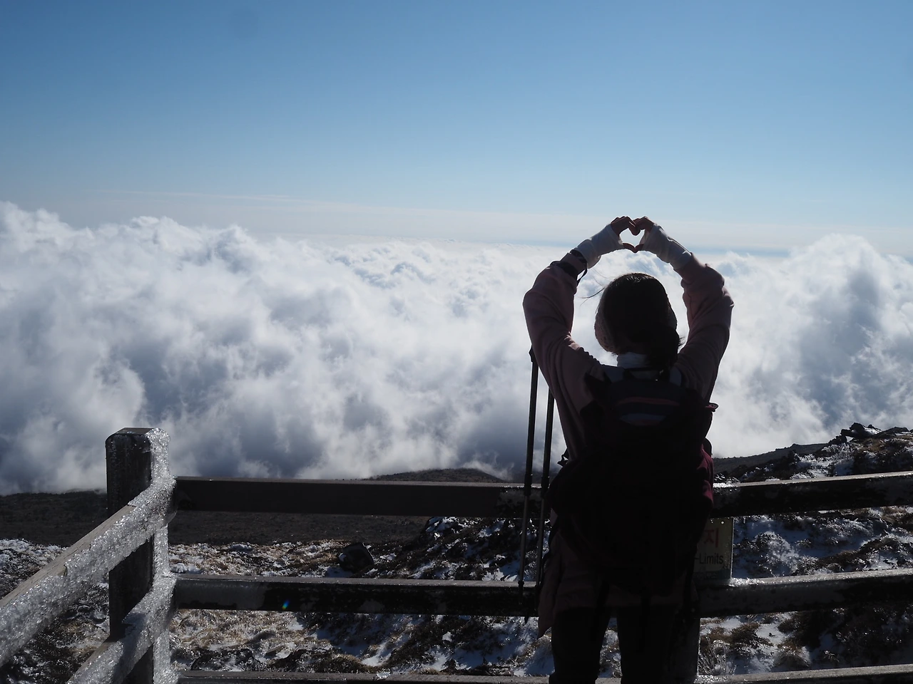 사방에서 불어대는 바람에 덜덜 떨며 카메라 전원을 켠다. 구름에 싸인 한라산 꼭대기. 아침에 비가 왔다는 사실을 망각할 만큼 맑고 깨끗한 하늘이 펼쳐졌다. 백록담 앞에 섰다는 것에 기뻐하며 황홀의 순간을 천천히 누렸다. 네 여자 모두 무사히 정상에 오른 걸 감사하면서.