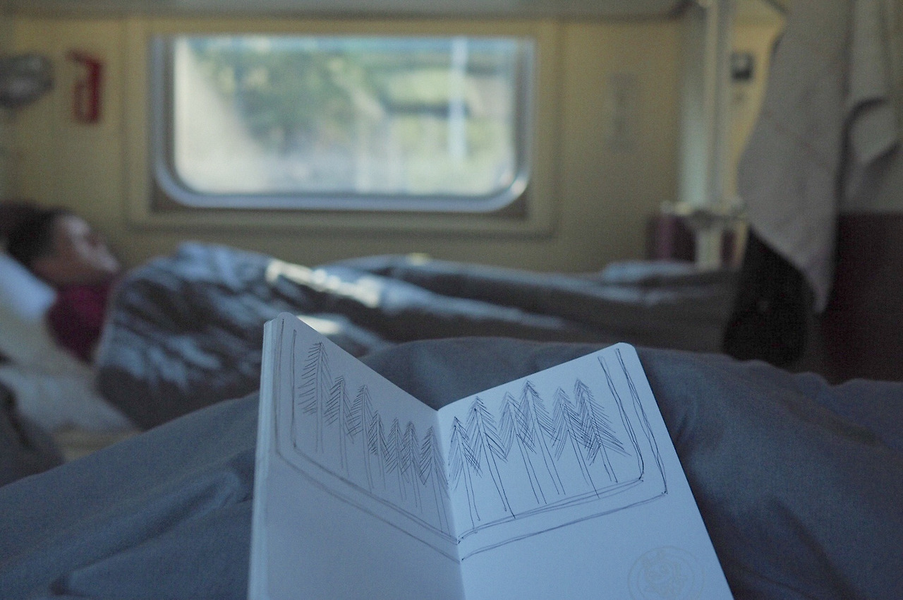 12:55 pm 햄을 넣은 라면을 먹고 비예든에게 받은 동물 비스킷을 꺼냈다. 그리고 쓴 커피 한 잔. 23시간 후면 라면에서 해방이라니, 행복하다. 여유를 즐기며 짐 정리를 한다. 위층에 널어둔 빨래를 개고 침대를 청소한다. 이쯤이면 시간이 많이 흘렀겠지, 하고 시간을 확인해 보니 12시 55분. 또 다른 도시로 접어들었나 보다. 이 열차는 하루 단위로 시간이 몇 번이나 바뀌는 마법을 부린다. 분명 부지런히 움직였는데 왜 다시 1시인 걸까..