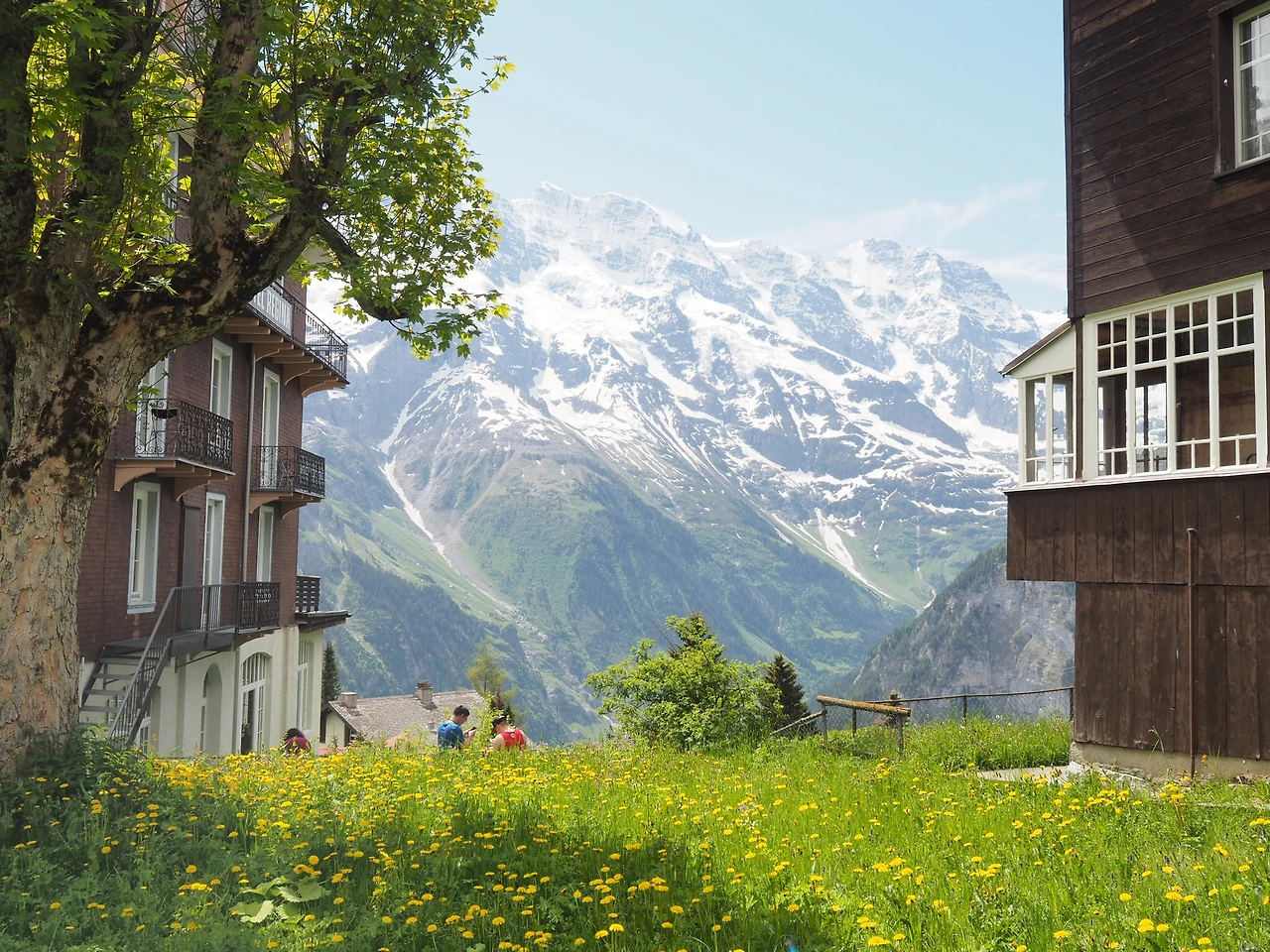 스위스에서 맞는 5일째 아침, 먹구름이 가득 펼쳐진 하늘 아래 뮈렌으로 향했다. 날씨의 영향을 많이 받는 나는 별 기대 없이 기차에 오른다. 열차는 몇 개의 역을 지나 종착역에 닿았다. 뮈렌에 도착하자 거짓말처럼 날이 개었고, 황홀한 아침 전경이 이어졌다. 꽃이 만개한 산 위의 작은 마을, 트롤리어스와 초록 언덕에 사는 사람들, 눈 내린 산맥의 모습.