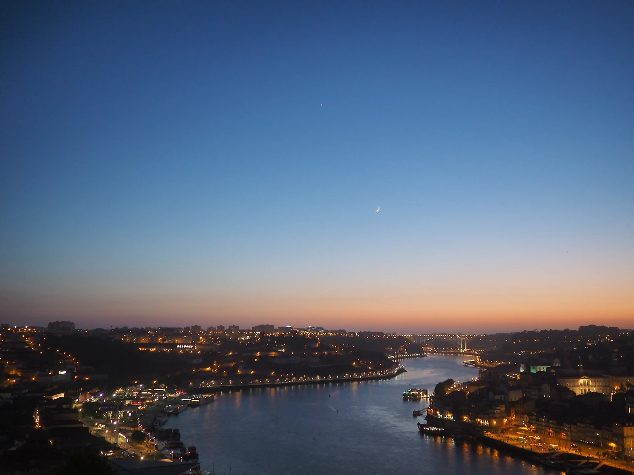 늦은 오후, 우연히 알게 된 동행들과 저녁 식사를 함께한다. 두 남자는 꽤 유쾌했다. 잦은 정적이 흐르기도 했지만. “저녁 먹고 야경 보러 갈래요?” 우리는 다리를 건너 성당에 도착했다. 갈매기들은 낮게 비행했고 햇빛에 물든 건물들은 마법을 부렸다. 포르투의 또 다른 세상이 펼쳐졌다. 해질 무렵, 얇은 초승달이 희미하게 빛났다. 금세 어둠이 내리고 도시에 켜진 불빛이 강가를 비췄다. 기대했던 순간을 만난 밤, 이 깊은 감동을 어떻게 표현할 수 있을까.