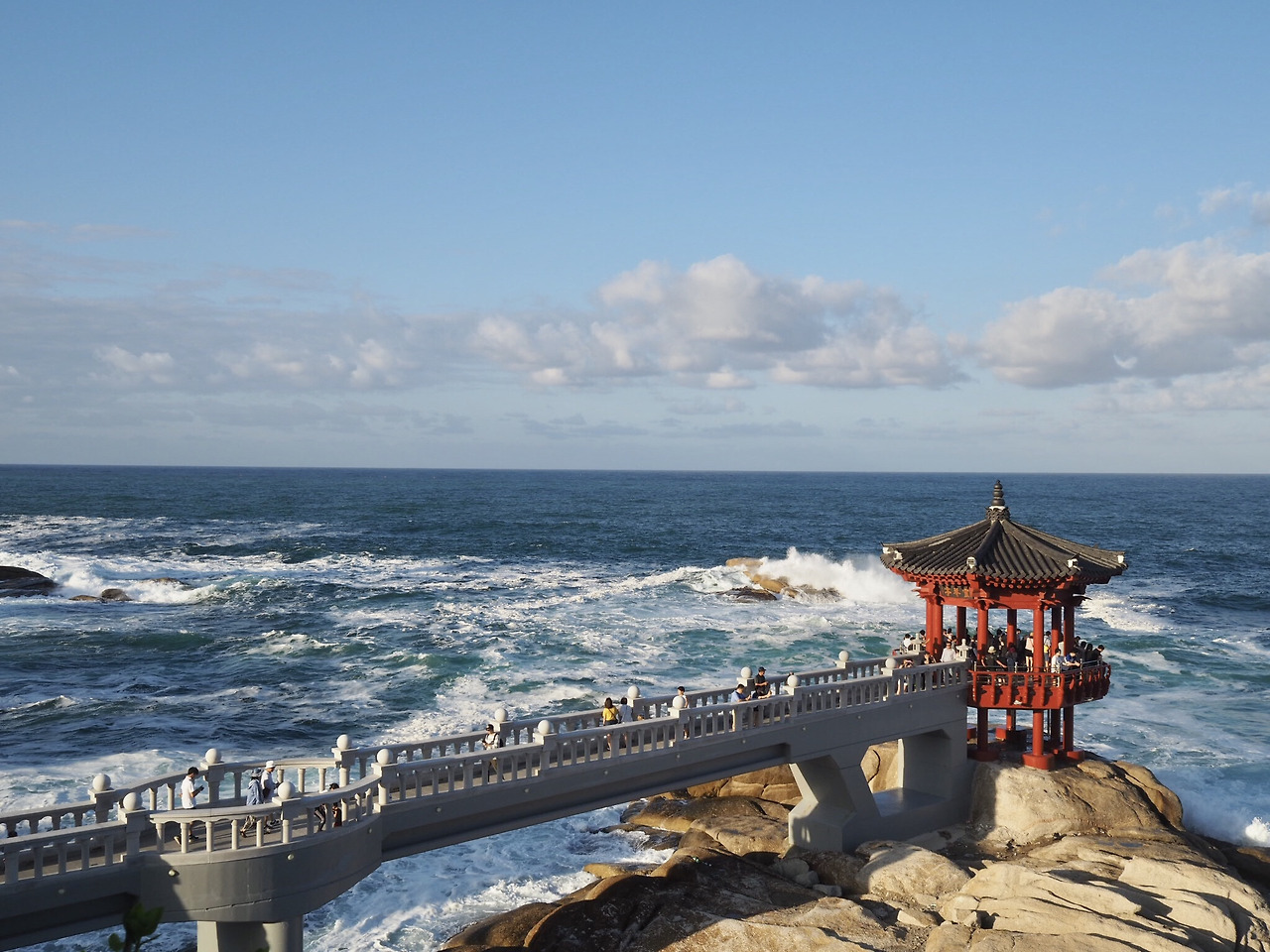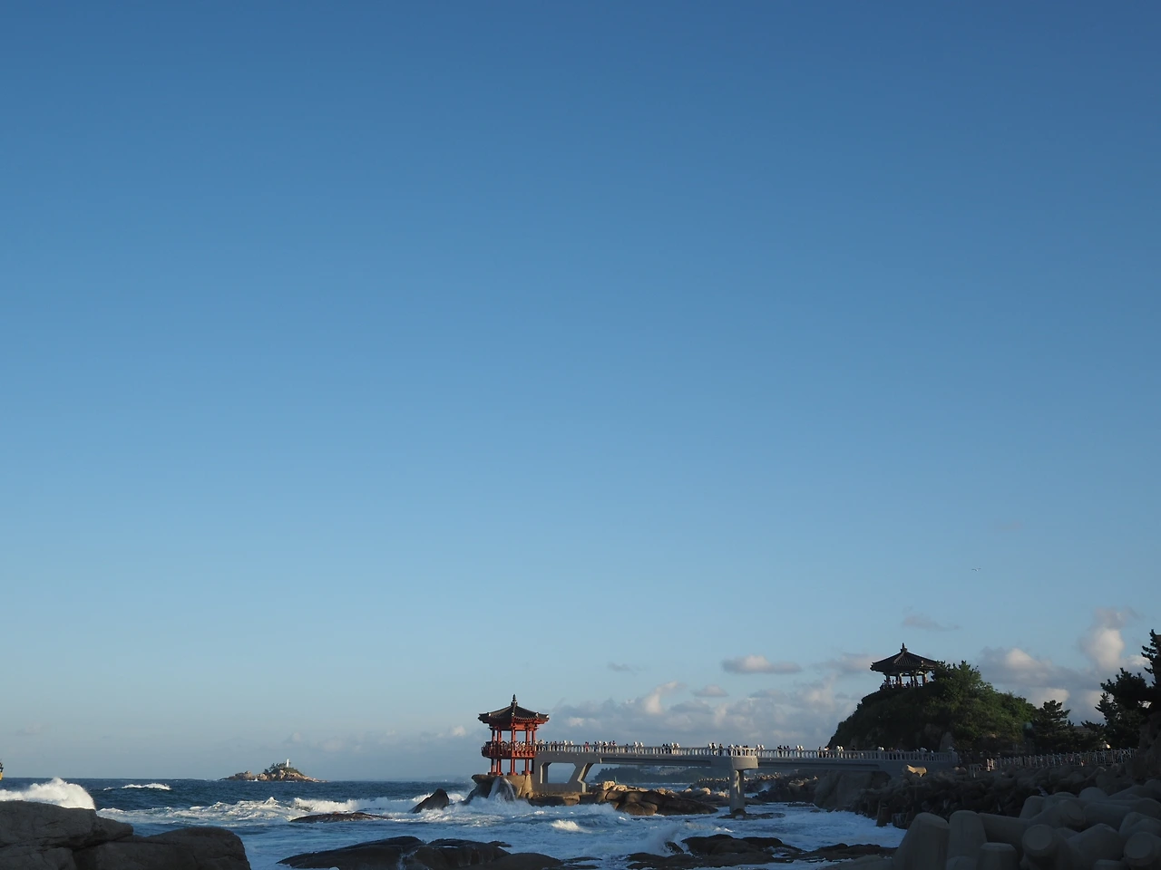 수복로 표지판을 지나 영금정에 도착한다. 셔터를 누르고 할 말을 잃은 채 난간에 기대선다. 모든 이들을 집어삼킬 듯한 파도가 발 밑으로 춤 춘다. 소금 냄새에 젖어 가만히 사색한다. 그 어느 때보다 아름다운 장면이 이어지고 바람 소리와 파도 소리가 한 데 겹친다. 거센 물결에 현혹되어 넋을 놓고 있던 중, 정자 위로 엄습하는 물세례를 맞는다. 너나 할 것 없이 모두가 물미역 같은 머리를 한 채 호탕하게 웃는다. 바닷물에 젖은 머리와 소금기에 물든 셔츠가 속초에 도착했다는 걸 증명해준다.