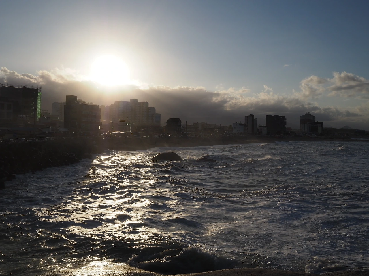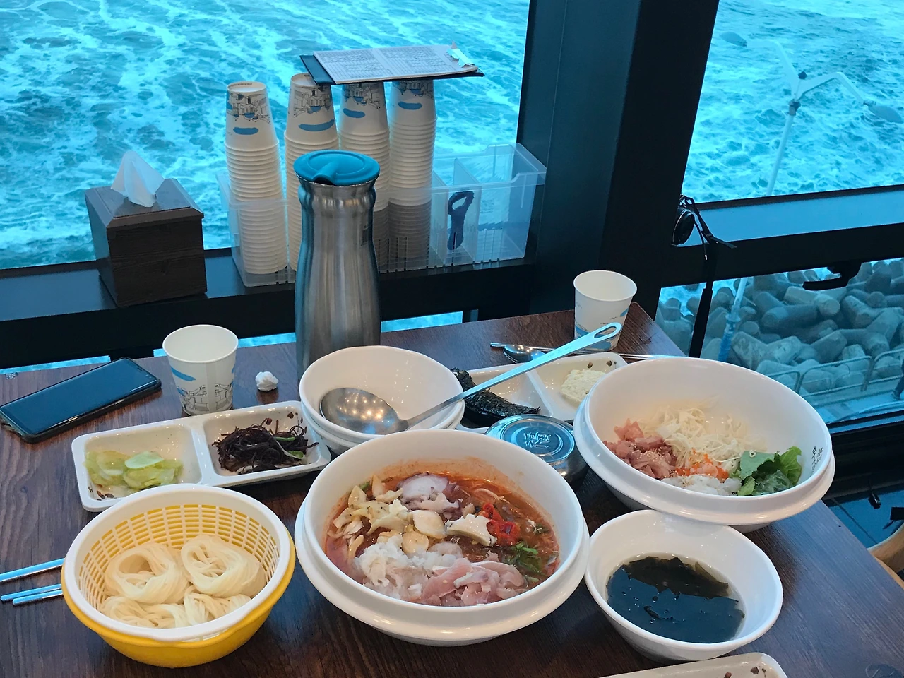 늘어지는 햇빛을 따라 바닷길을 걷는다. 해안도로 건너편에 있는 식당으로 들어가 자리에 앉는다. 큰 건물 벽면에 바다가 한가득이다. 배고픈 여행자의 식탁에 차려진 화려한 저녁상. 두 여자는 수저를 들고 만족스러운 식사를 이어간다. 하늘에 선연하게 그려진 구름과 지는 해를 보며 감사의 대화를 나눈다. “우리가 진짜 속초에 왔어.”