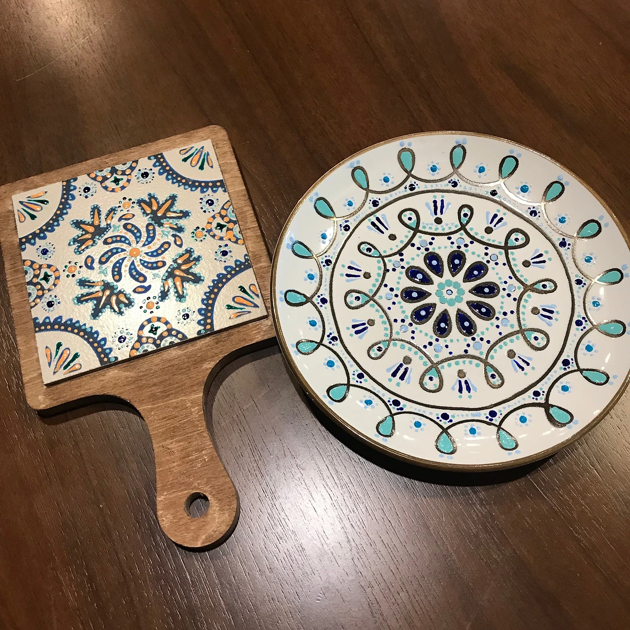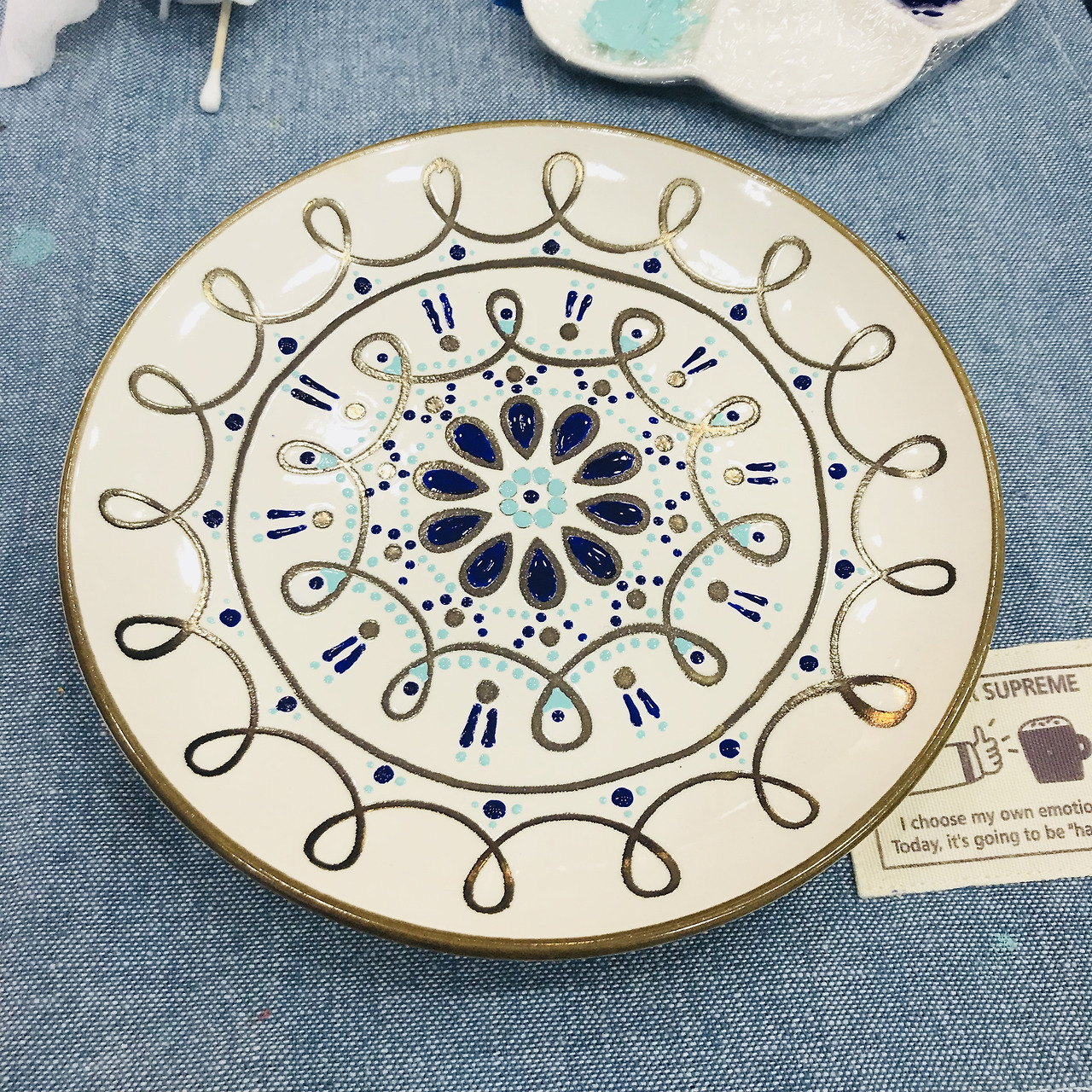 2시간 정도 가느다란 붓과 스틱을 이용해 접시에 무늬를 그려나가다 보니 어느새 두 개나 작품(?)을 완성했다.