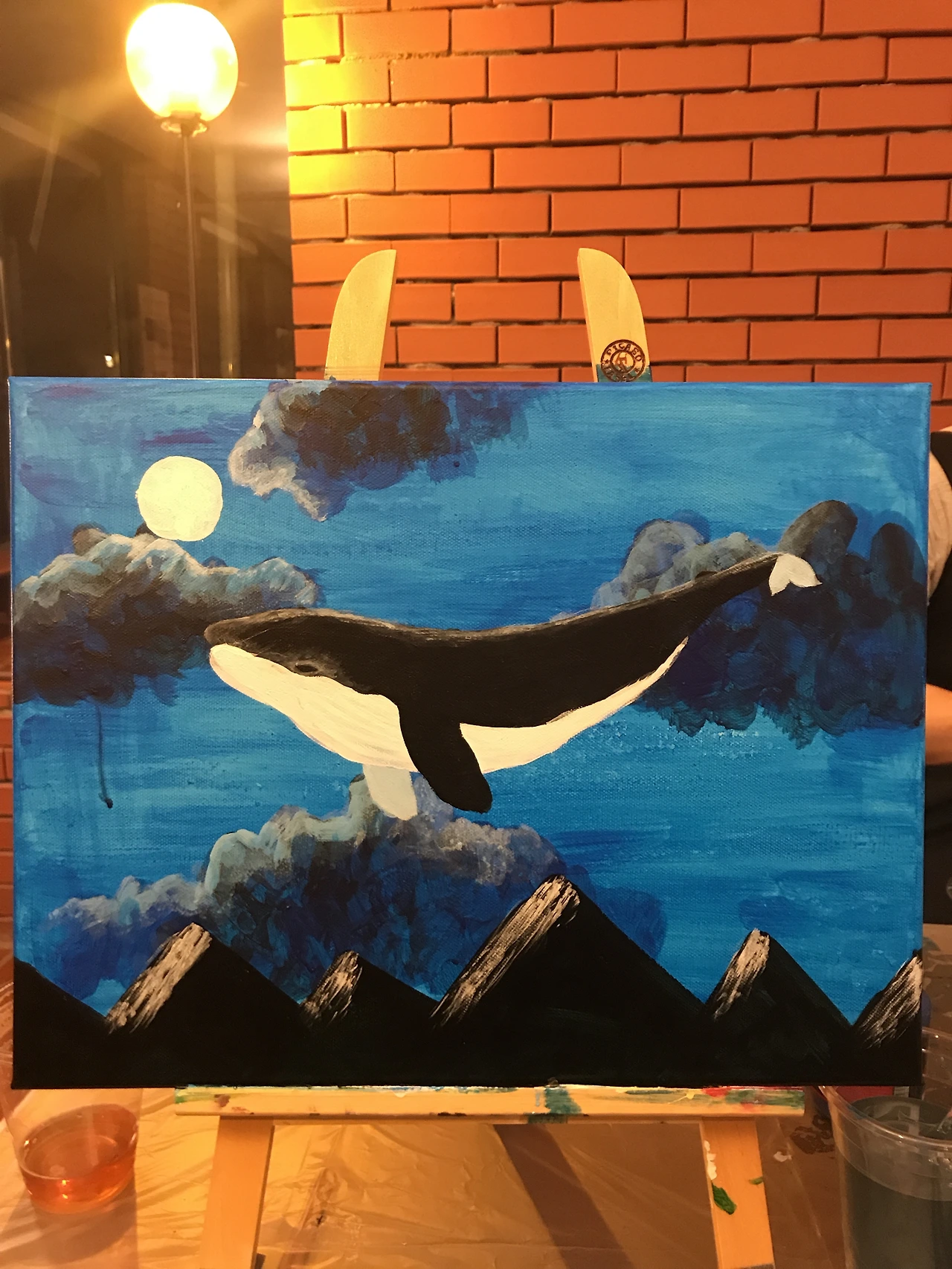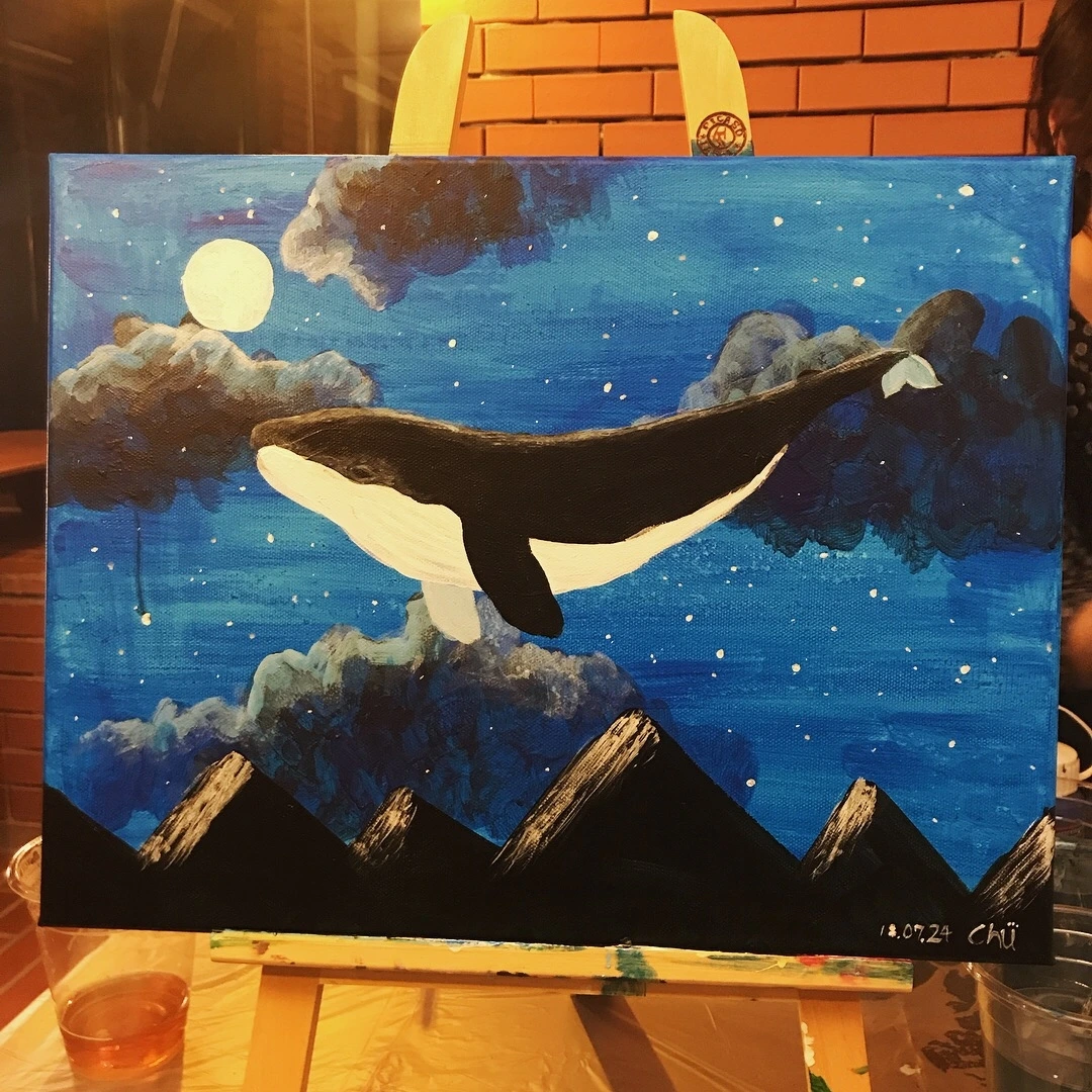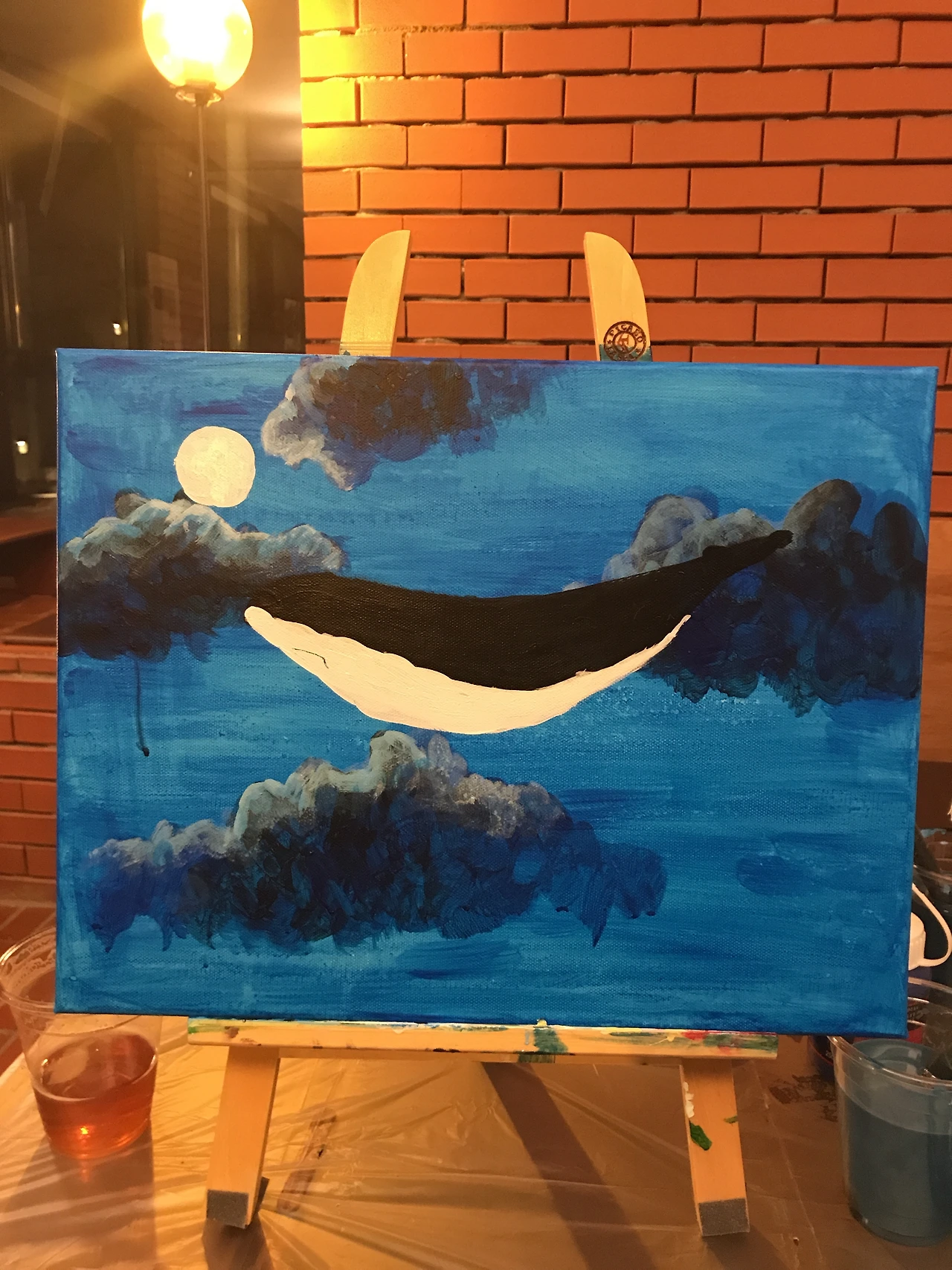 이 날의 주제는 밤, 고래였다. 밤하늘을 나는 고래라는 아주 로맨틱한 그림을 과연 내가 그릴 수 있을까?