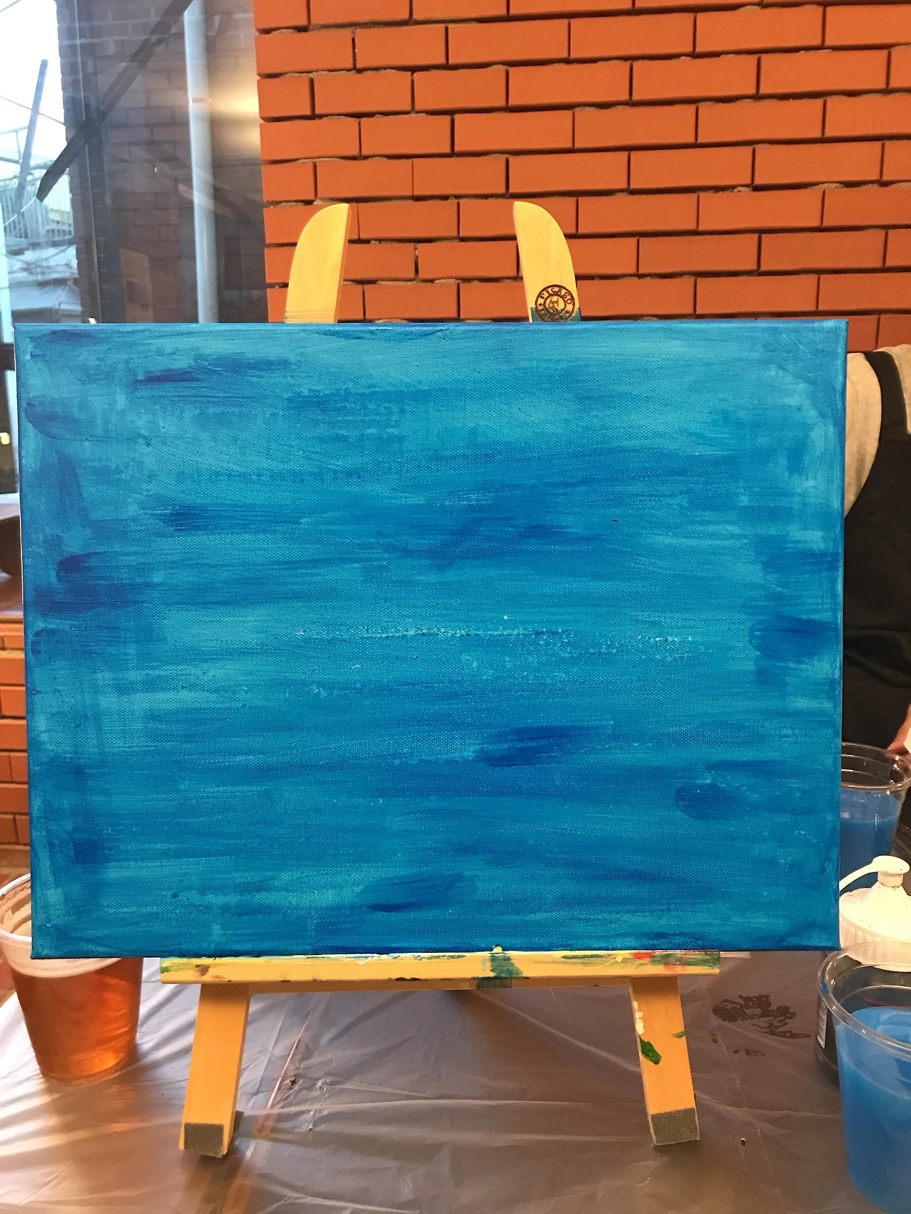 내가 0부터 구상하는 것도 아니고, 선생님이 하란대로 붓을 놀리면 되는데 이게 참 어렵다. 색은 얼마나 섞어야 할지, 물은 얼마나 묻혀야 하는지 모르겠으나 일단 용기를 내어 캔버스에 그어 보았다. 바탕을 실컷 칠하고 나니 그 위에 새로운 색을 얹는 데 자신이 조금 생겨났다.