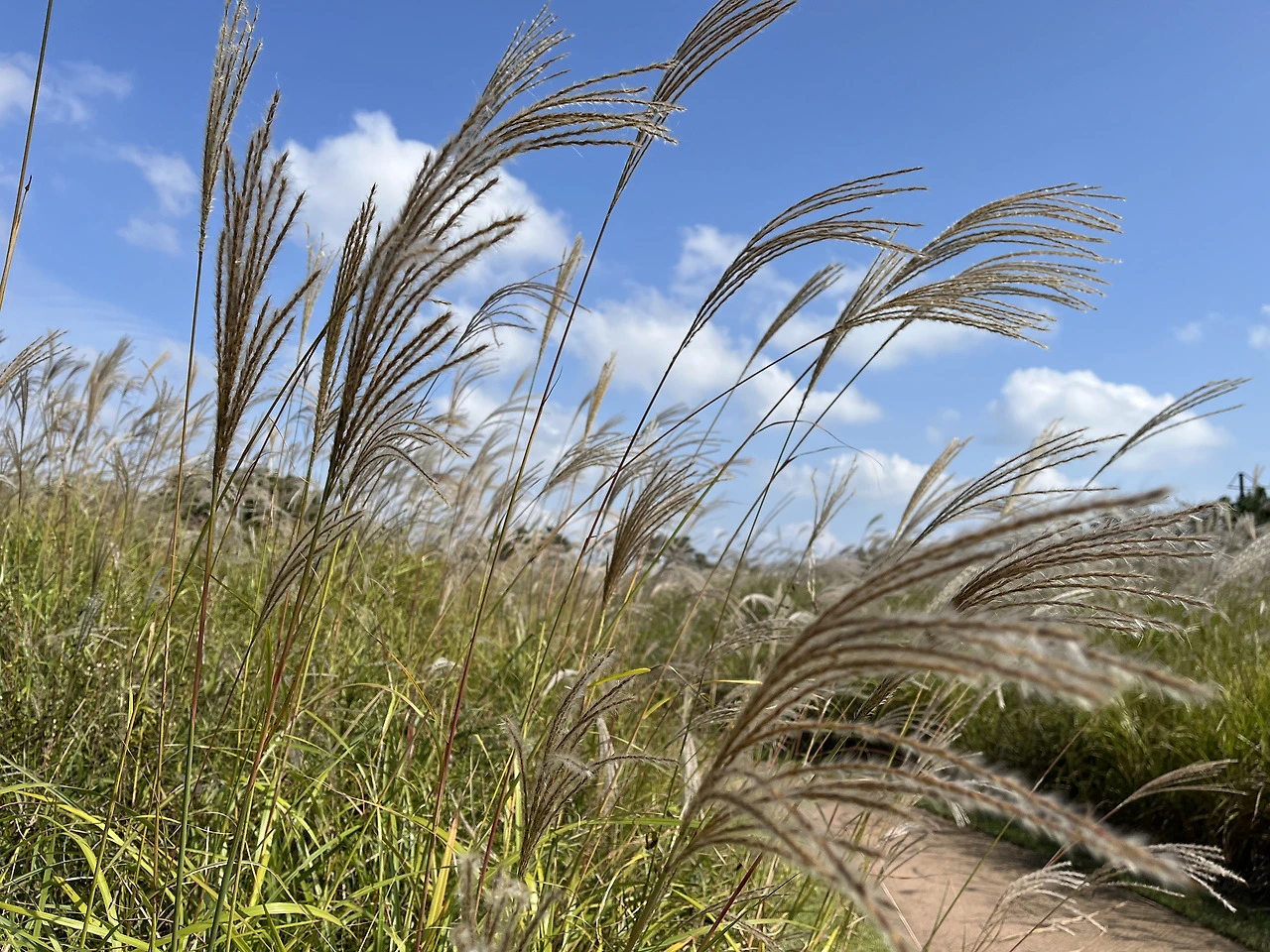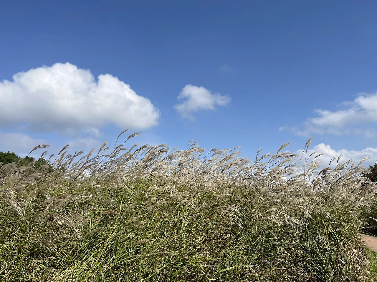 옆으로는 금빛 억새밭이 바람결에 파도처럼 일렁였다.