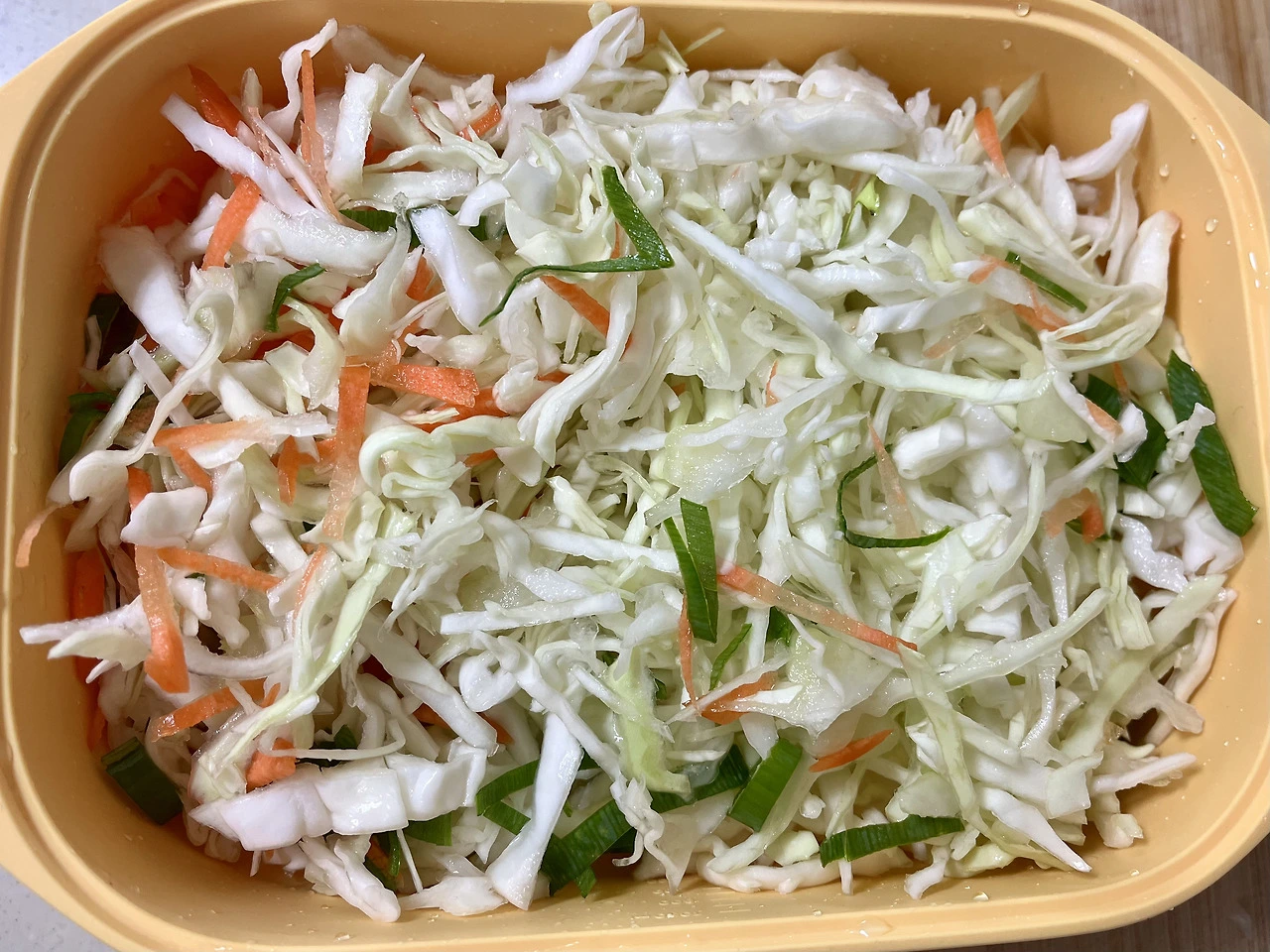 채 썬 양배추, 당근, 대파를 담는다.