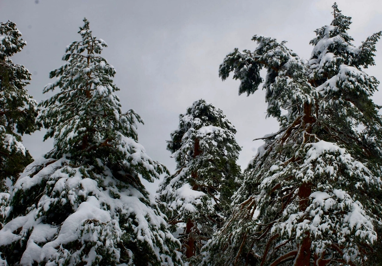 소나무 위엔 부드러운 눈송이가 조용히 내려앉았고,