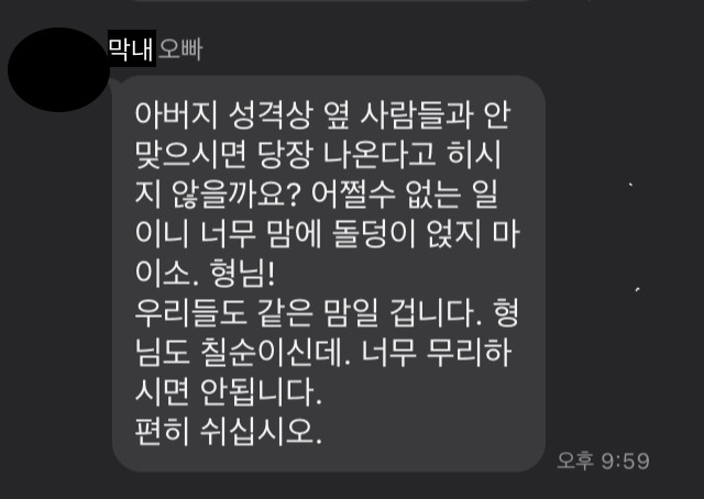 오빠들도, 언니들도 마음이 안 좋은 건 마찬가지 일 것이다.