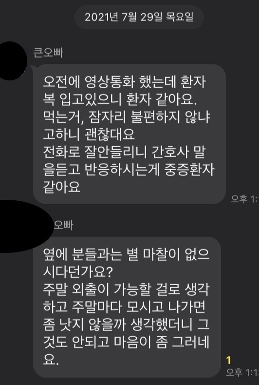 코로나가 언제쯤이면 주춤할지, 그때까지 두 분 다 기다려 주실지, 엄마에 대한 희망의 끈을 놓은 아버지가