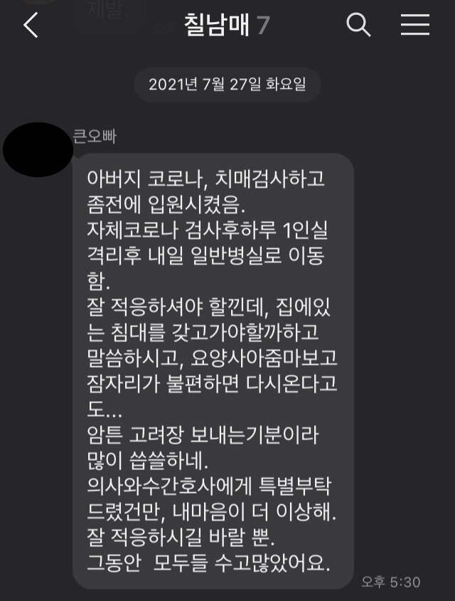 칠 남매 단톡에 큰오빠의 공지가 떴다.