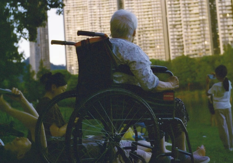 휠체어에 앉은 할아버지를