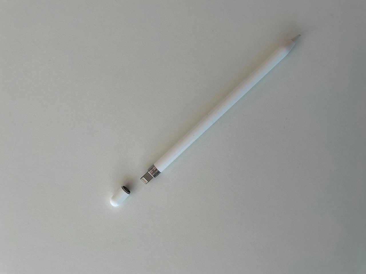 우리 때 사용하던 연필에는 지우개가 비슷한 모양으로 붙어있어서 뗐다 끼웠다를 할 수 있었었는데… 애플 펜슬에는 지우개가 아닌 충전단자가 자리하고 있네요. (혹 우리 것을 베낀 건 아닌지..)