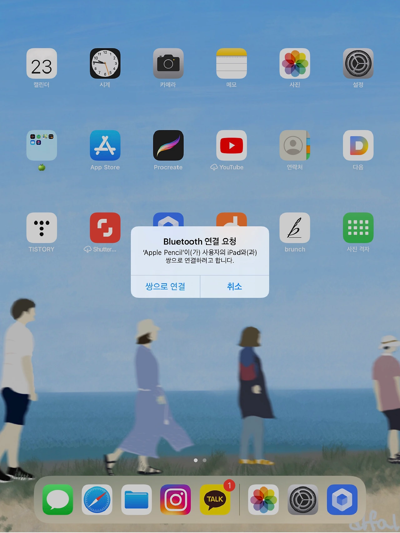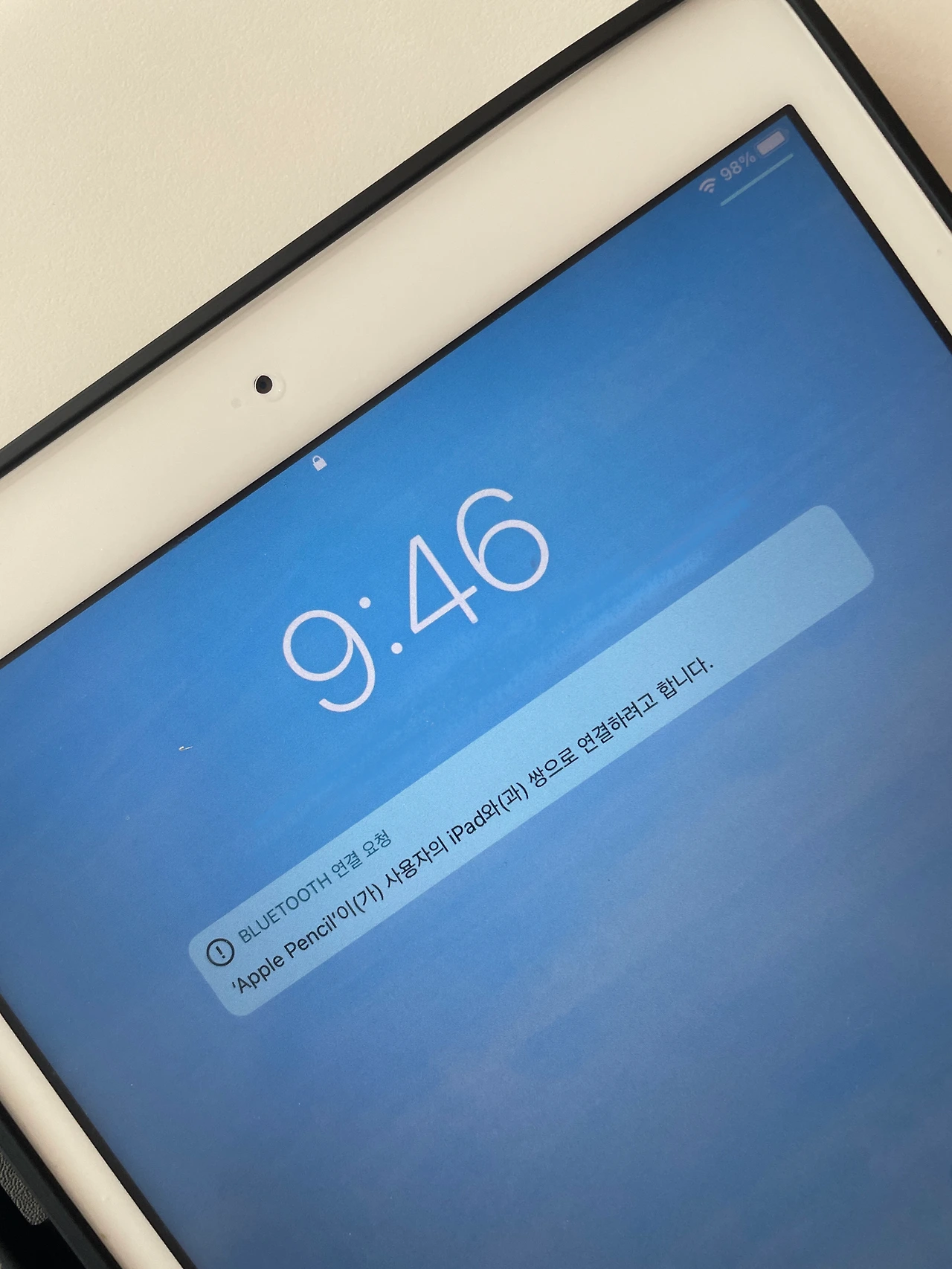 저렇게나 친절하게 애플 펜슬이 사용자의 아이패드와 쌍으로 연결하려고 한다는 메시지와 함께.