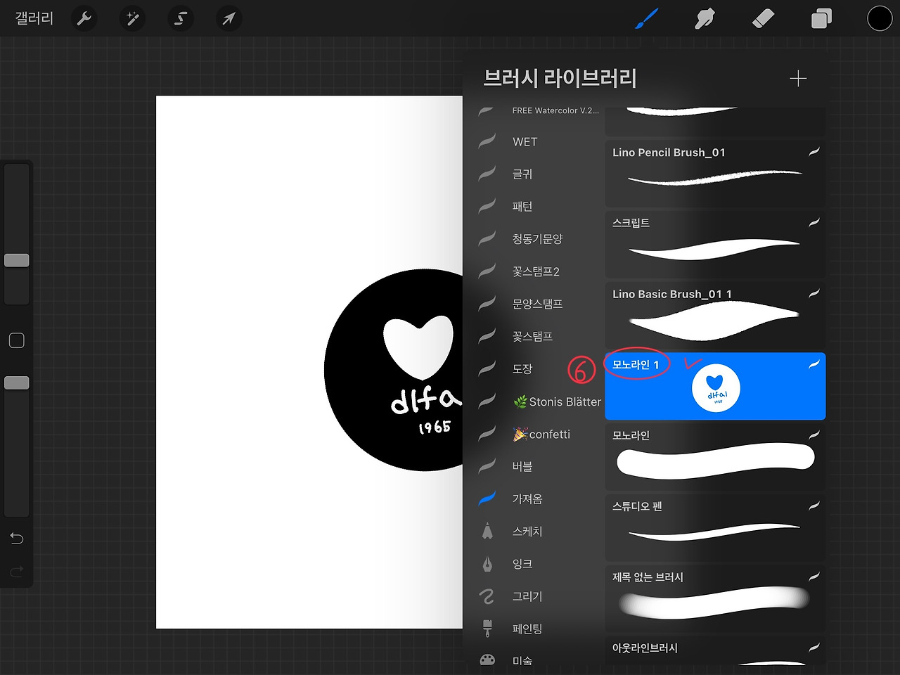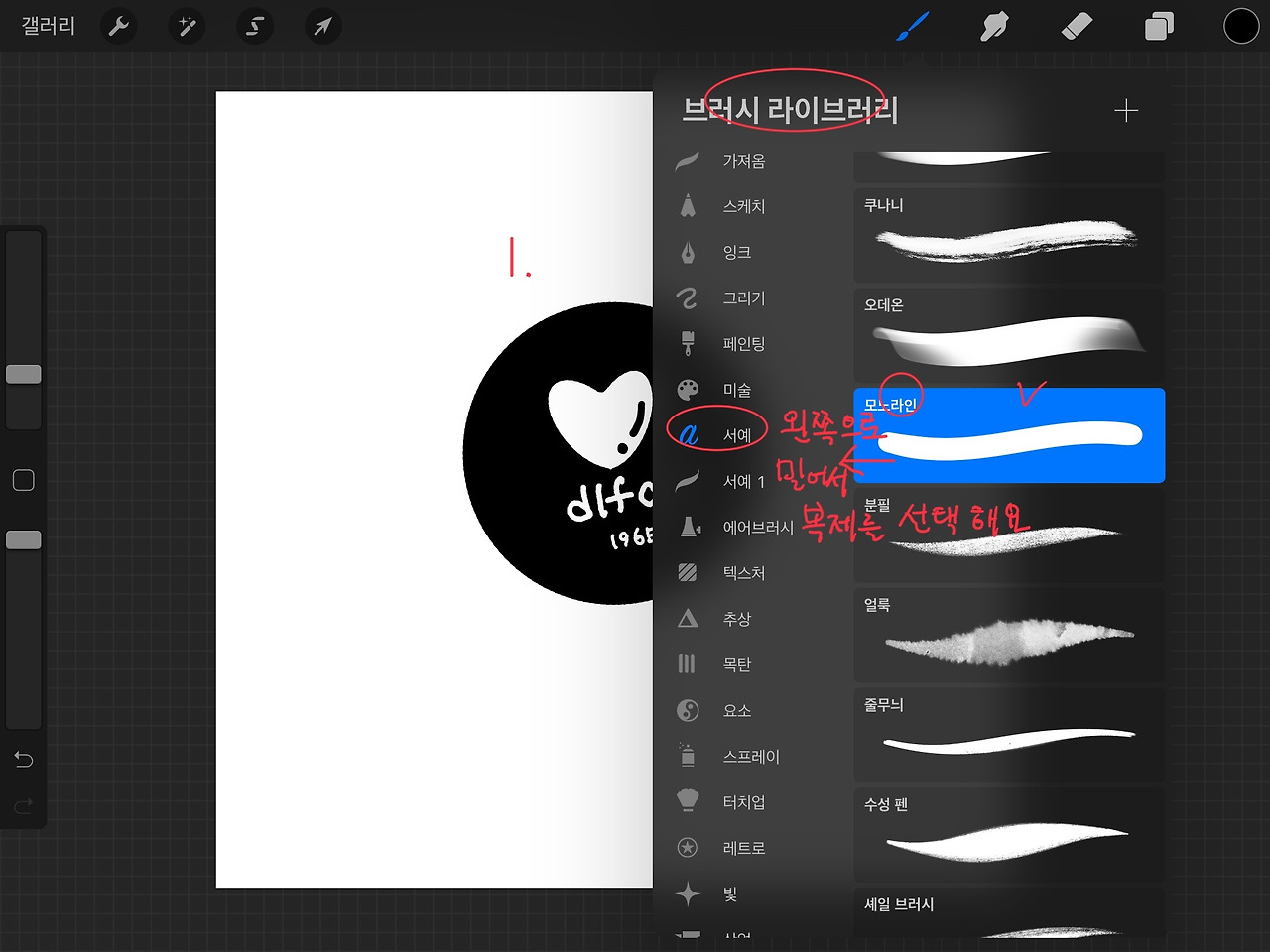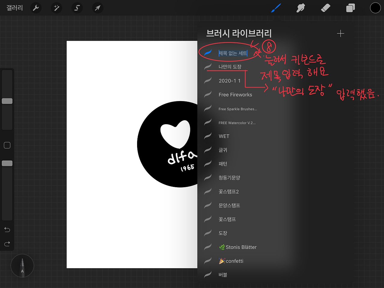 10. 도장 브러시가 만들어졌죠? 브러시 라이브러리에서 제목을 달아 줄 거예요