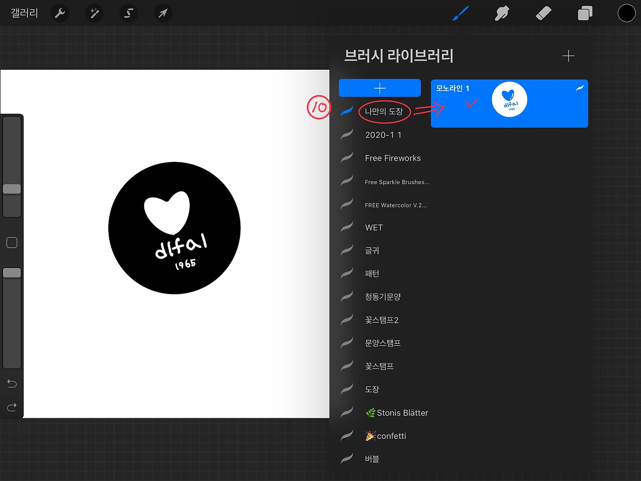 브러시 라이버러리에 <나만의 도장>이 생성되었어요.