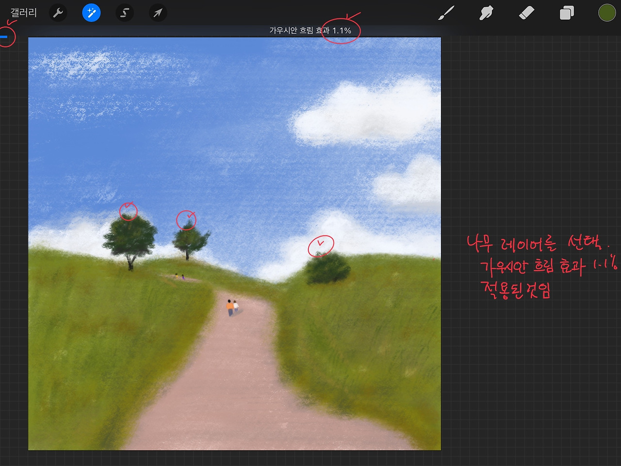 *아래 사진처럼 그림의 언덕과 나무를 가우시안 흐림 한 상태입니다.