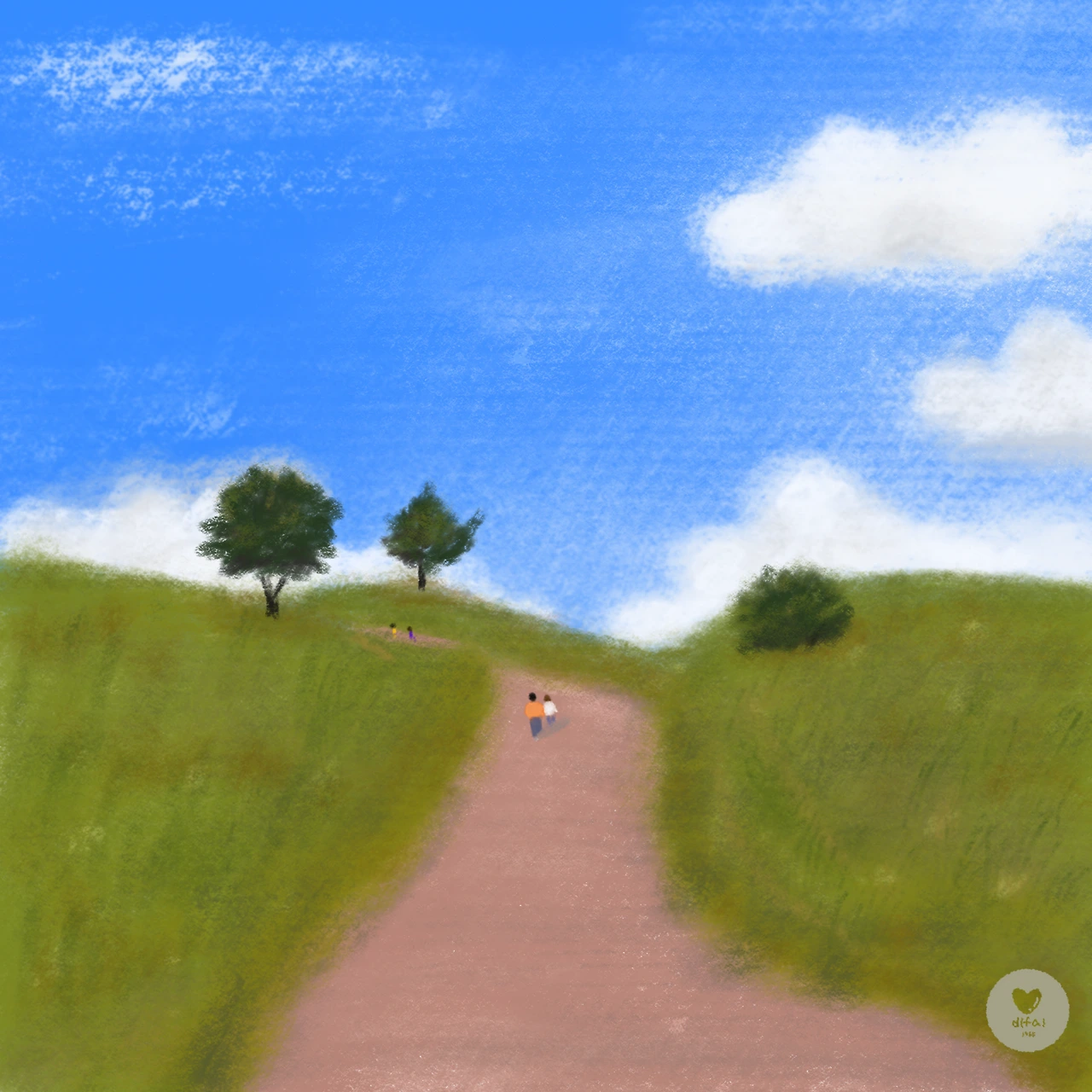 *언덕 색상 언저리의 색으로 뭉텅한 풀도 취향껏 표현해 봅니다. (브러시 크기를 줄여 직선으로 짧게, 길 게를 적당히 섞어 가며 표현해 보세요.)