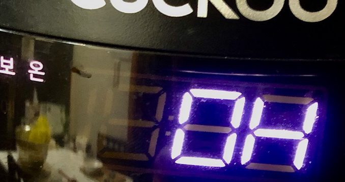 취사가 끝나고 보온 상태로 넘어간 시간을 표시해주는 '숫자 0과 알파벳 H'