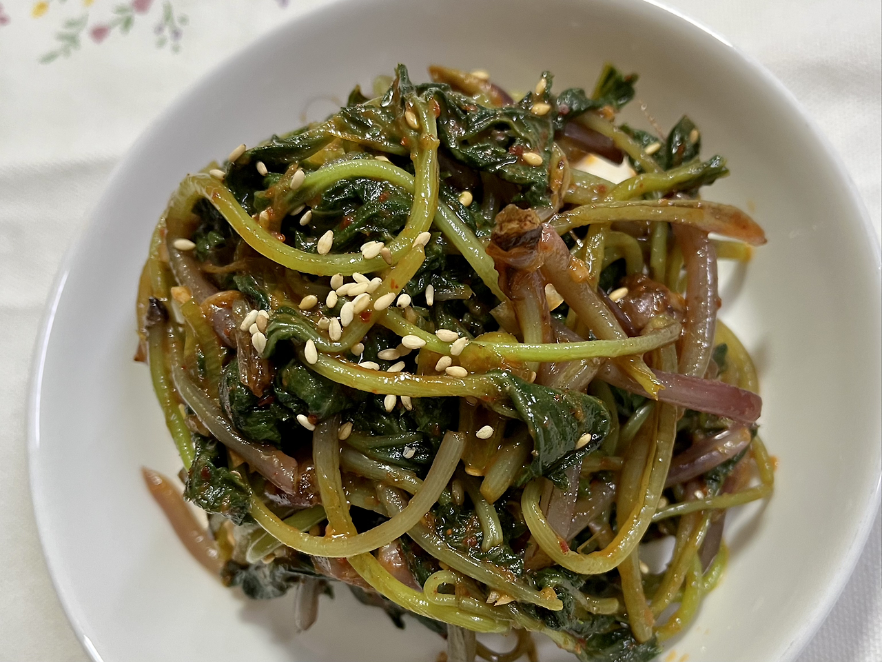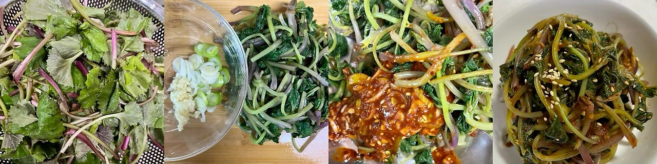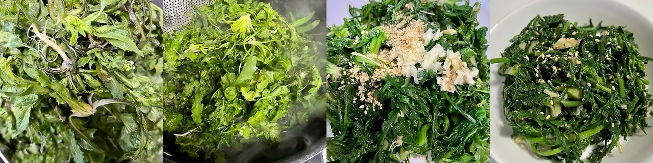 -국간장. 고추장. 된장 약간만 넣어 간을 맞추고, {파송송 ㅣ 다진 마늘 ㅣ 참기름 ㅣ 깨소금} 넣고 조물조물 무친다.