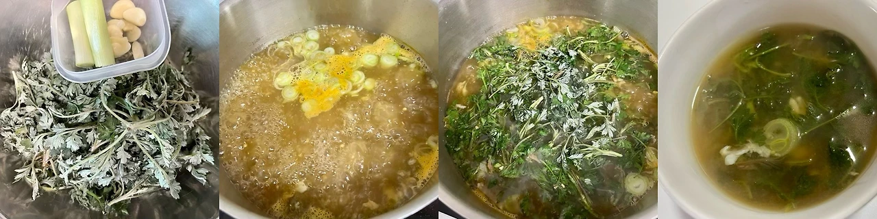 -팔팔 끓으면 씻은 쑥을 넣고 한소끔 더 끓인다