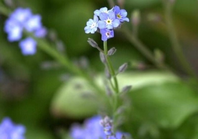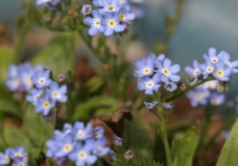 물망초는 작은 하늘빛 꽃잎에 노란 중심을 가진