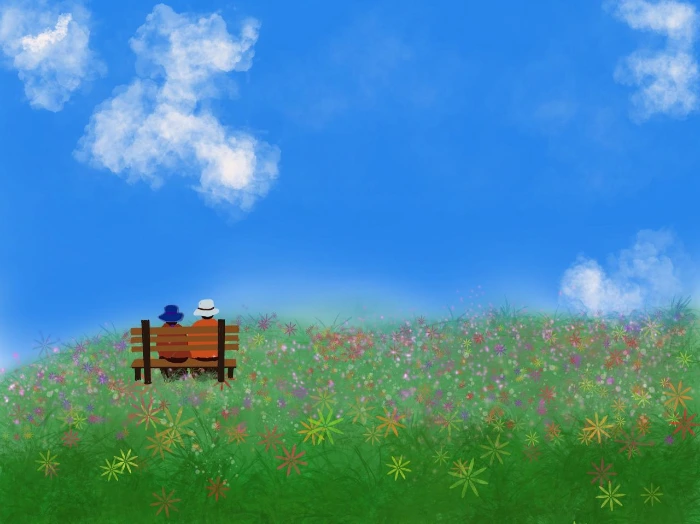 (인스타에 처음 올린 그림 -꽃밭 속 우리 부부)