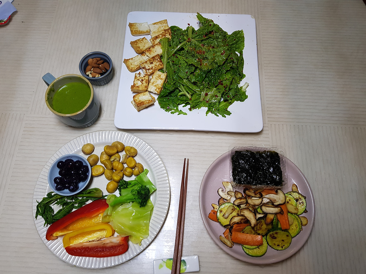 탄수화물이 없는 저녁을 위해 채소와 견과류, 두부, 우유, 살코기 위주로 식단을 짜는 것이다. 마른 반찬을 좋아하지 않는다는 핑계로 늘 한 가지 간단하게 준비하여 식사를 해결해오던 나로서는 매일 매일 샐러드 및 단백질 요리를 하는 것이 쉬운 일은 아니었다. 그러나 나는 호기롭게 온 가족 들 앞에서 남편의 건강한 다이어트를 하겠노라고 공표해놓은 상태이고 남편의 다이어트는 절실했기 때문에 퇴로는 없었고 난 열심히 식단을 연구(?)하였다.