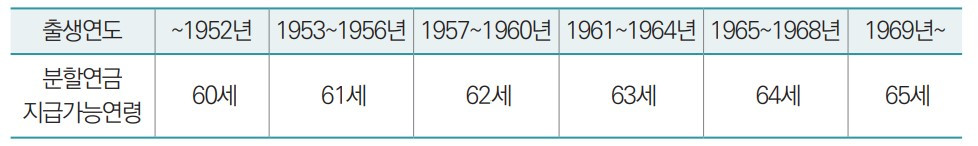 지급가능연령이 되어야 하는데요 이 나이는 노령연금 수령나이와 동일합니다.