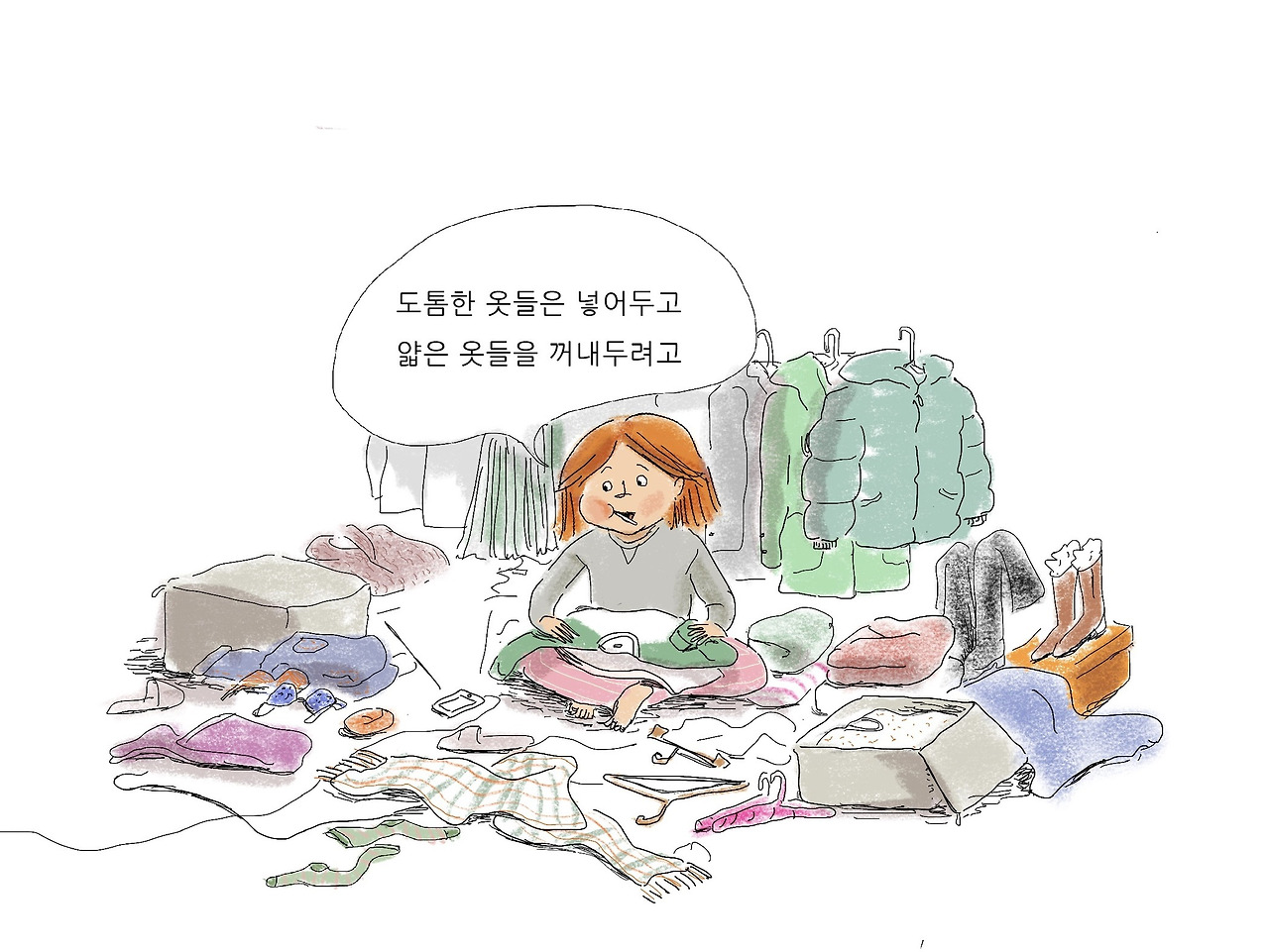 옷정리 하는 여자
