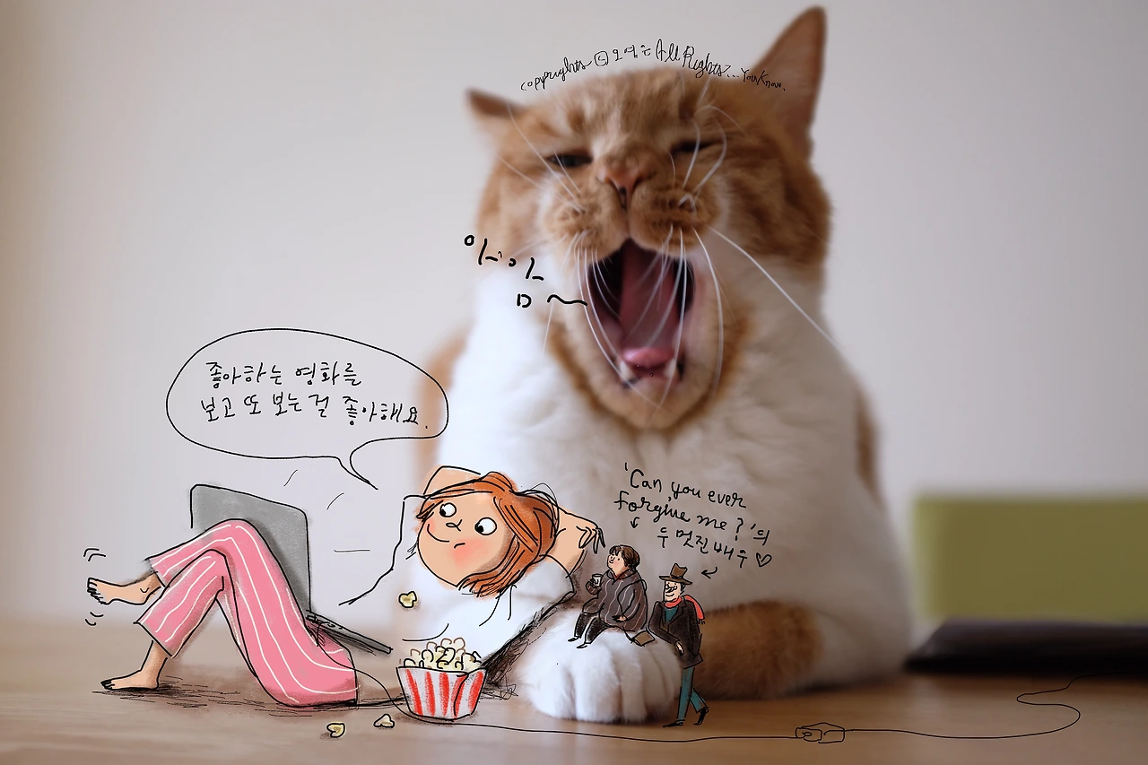#하품하는 저 고양이는 히어로물 더 좋아하나 봐.