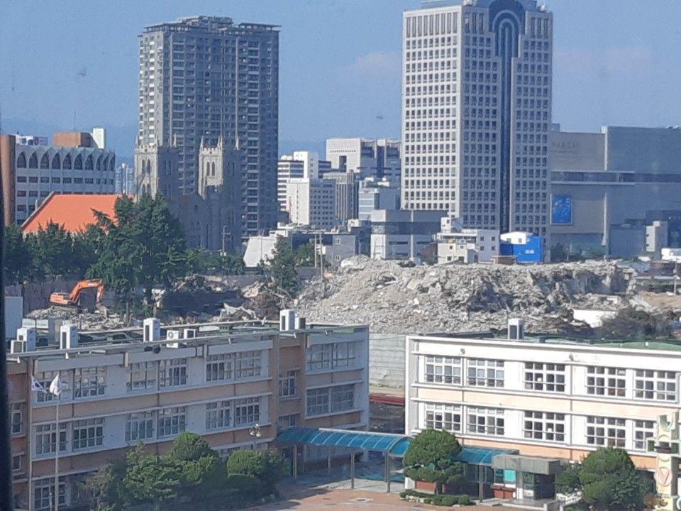 <그림 6 한창 재개발 공사가 진행 중인 대구 지역 한 초등학교 모습. 2018년 3월>