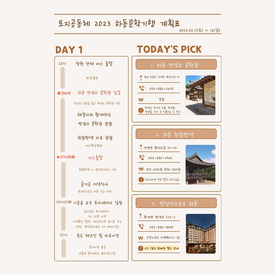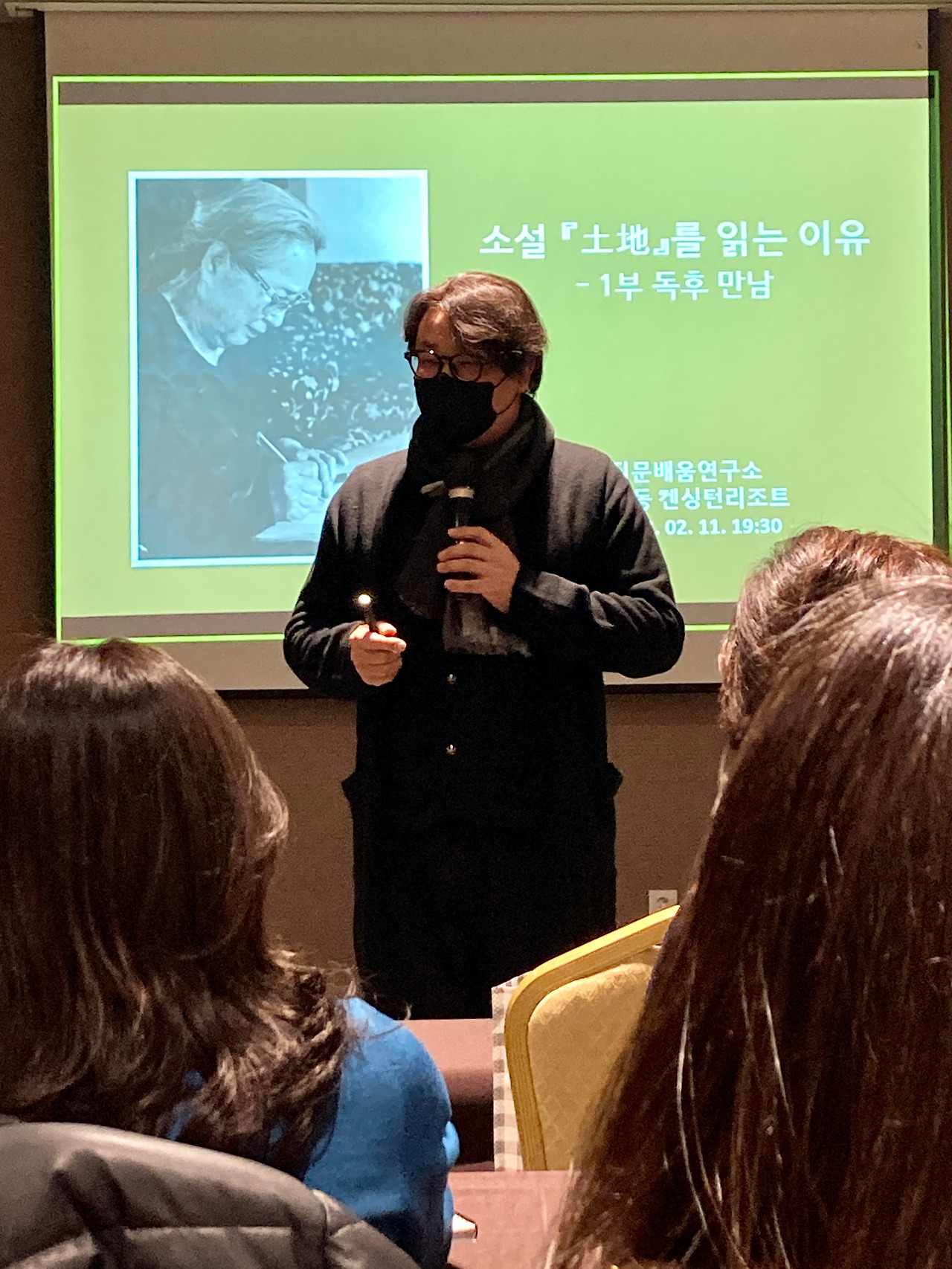 토지공동체는 20개월 대장정의 독서모임으로 현재 토지 5부 중, 1부 5권까지 진도가 나갔다. 5권의 책거리를 겸해 1부의 배경인 하동 평사리로 문학기행을 온 병아리 독자였기에 하동과 간도 두 개의 공간까지만 읽고 이 책을 덮었다. 다 읽어버리면 방사능 스포에 노출되어 남은 15개월을 찐하게 보내기 어려울 것 같았기 때문이다. 책 속에 소개된 이승윤교수님과 토지의 단짠단짠 콜라보가 재미있어 수업이 궁금했다.
