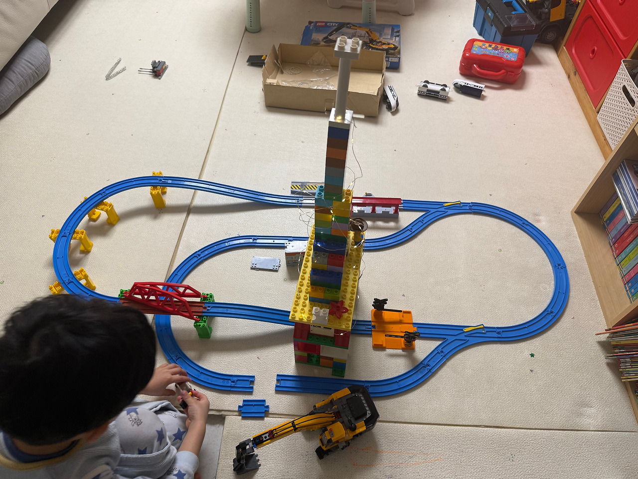 아이는 결국 새로운 버전의 기찻길도 이전 보다 더 빠르게 도면을 보면서 조립을 완수했고, 외할머니가 봤다는 에펠탑도 만들어서 전시까지 했다