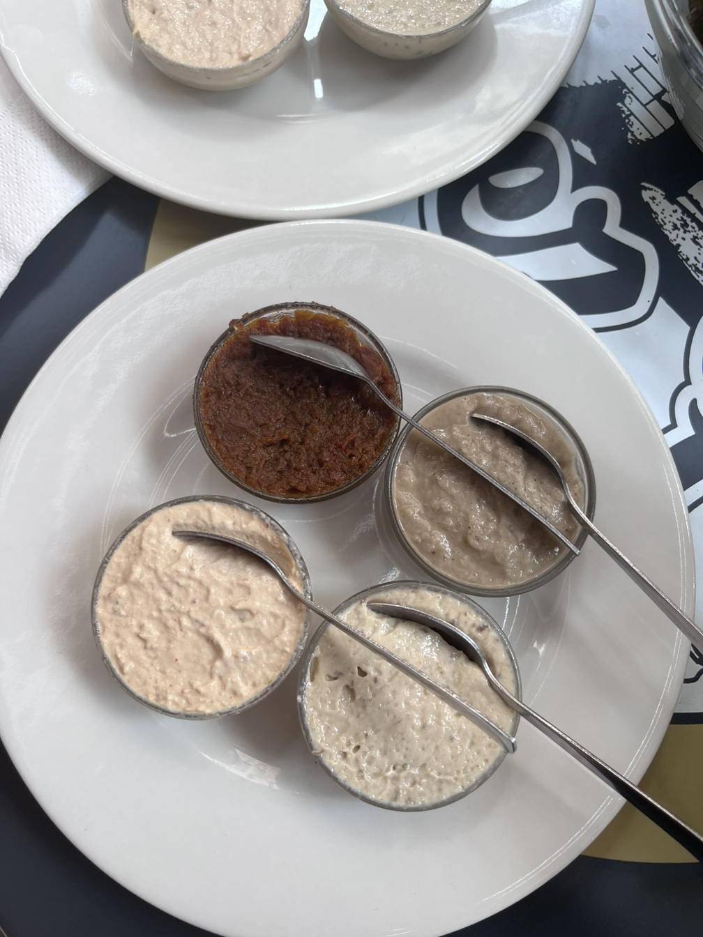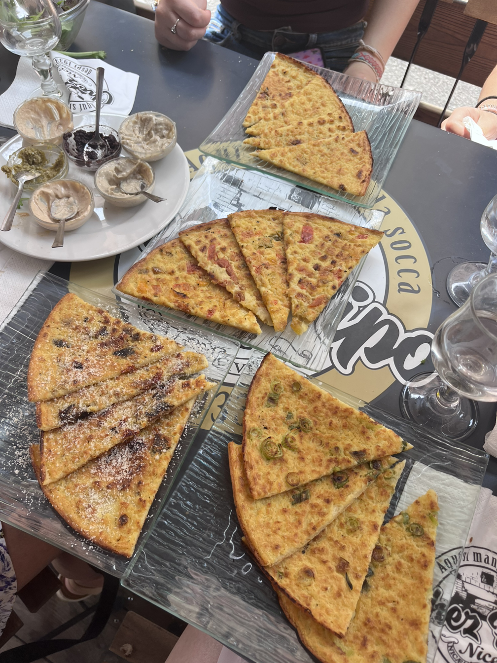 콩가루로 만든 전.고소하고 짭짤한 전이 겉은 바삭하고 속은 부드럽다. 와인과 잘 어울리고, 참치, 멸치등을 갈아서 만든 소스에 곁들여 먹으니 내 입맛이 딱이다.