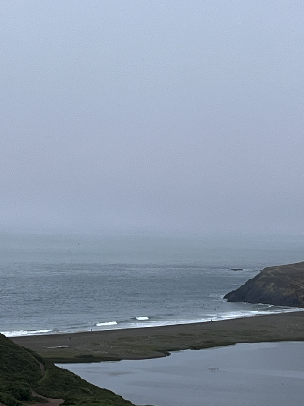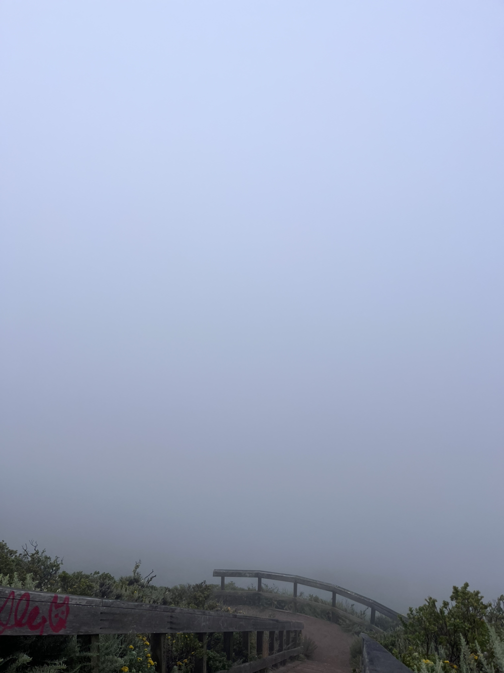 아메리카노를 보온컵에 가져가길 잘한 것 같다는 생각이. 저 안개뒤에 숨어있는 Pacific Ocean 을 그려봅니다.