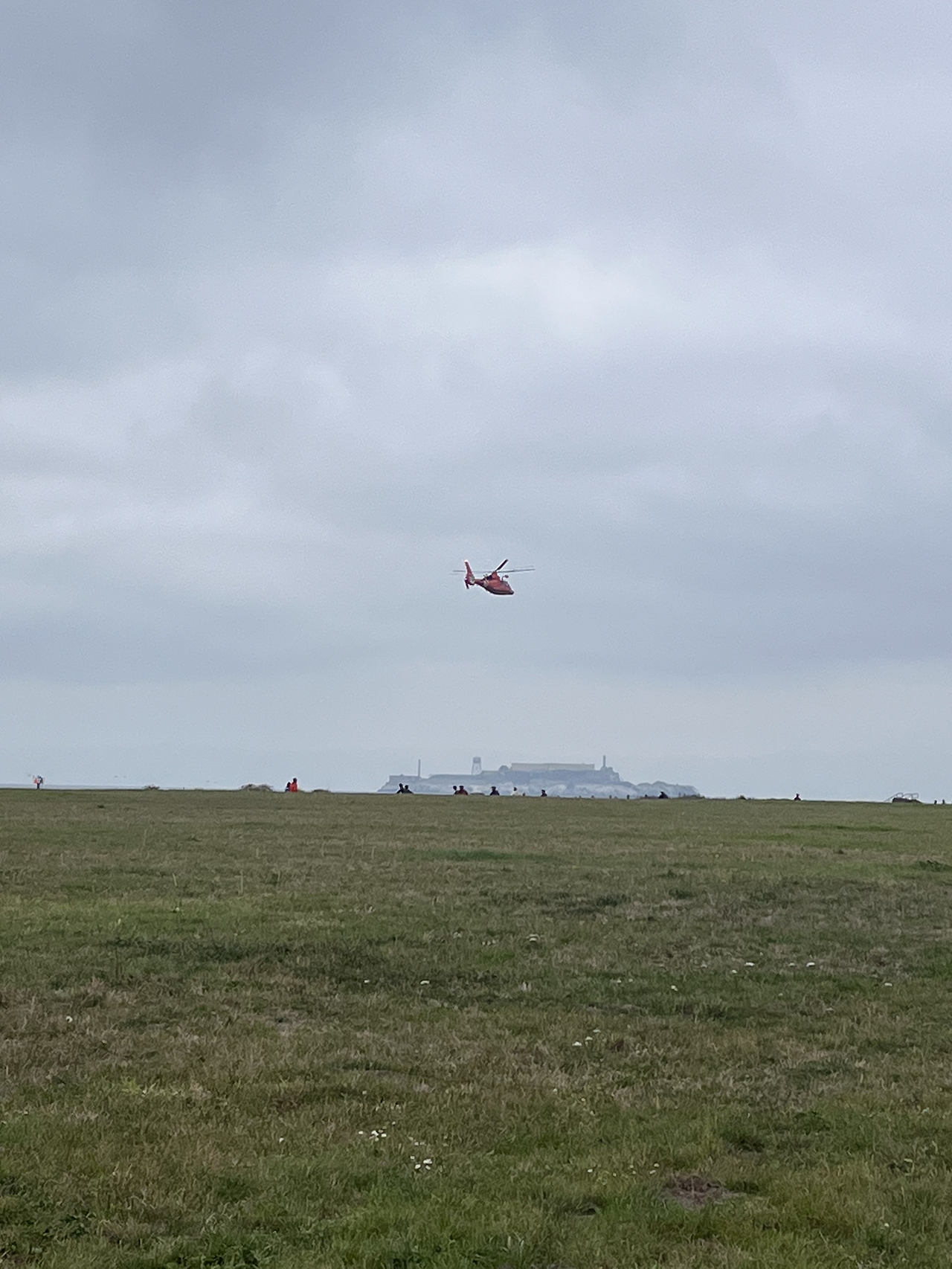 난 헬리콥터를 보면 슬퍼진다. 오늘은 누가 자유비행을. 했는가? 금문교는 아름다운 다리이지만, 또한 자살을 시도하는 많은 이들에게 관심을 받는 곳이기도 하다. 저렇게 헬리콥터가 뜬다는 것은 누가 또 떨어졌거나 주변 절벽에서 낙사를 했거나 바닷가에서 수영을 하다가 실종된 사람을 찾는 경우다.