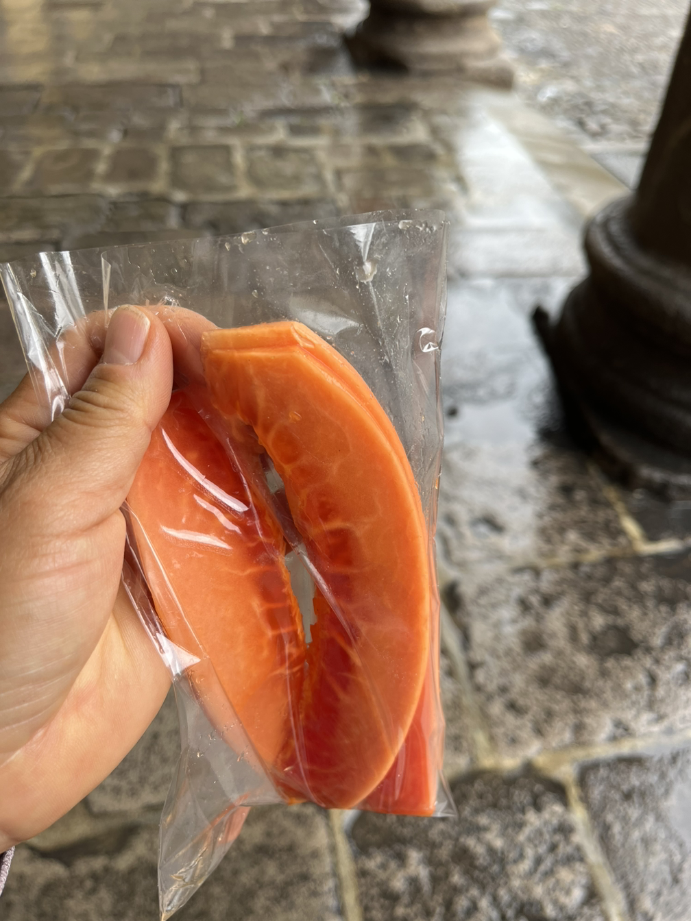 신선한 과일주스와 샐러드를 먹고 일단은 안티구아의 도시를 대충 파악하길 했다. 목적이 없는 듯 돌아다니다가 신선한 과일을 파는 리어카를 보고 파파야를 10 케찰을 주고 샀다.